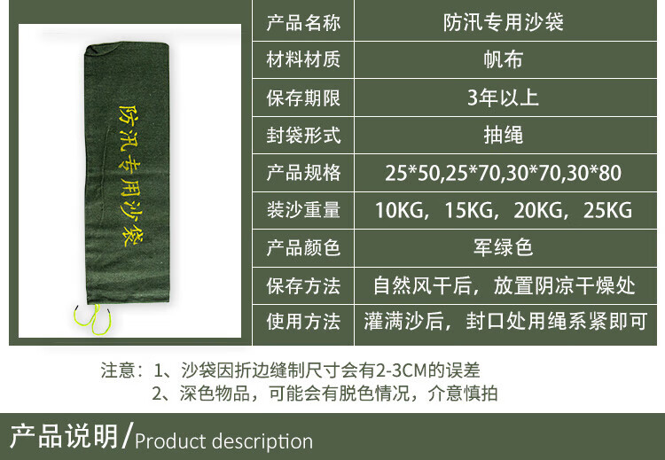 海斯迪克 防洪防汛沙袋 HKCX-368 帆布 30*80cm 不含沙 20条 1件
