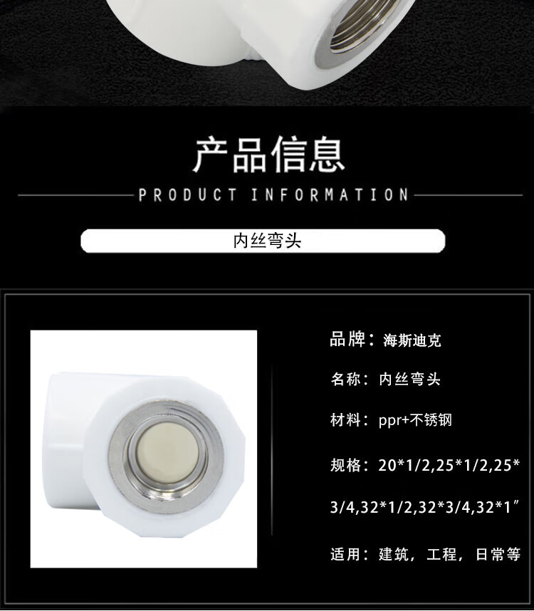 海斯迪克 内丝弯头 HKXJ-10 PPR 32*1 1个