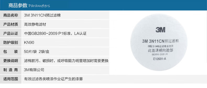 3M 防尘滤棉 3N11CN 聚丙烯纤维 1个
