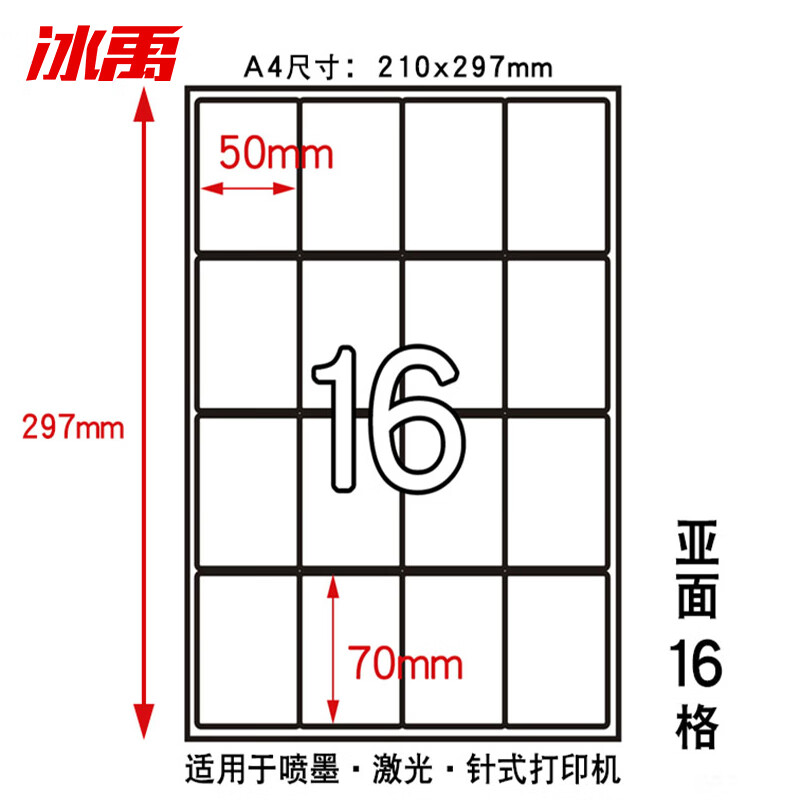 冰禹 亚光a4不干胶标签纸 BYyn-36 16格50*70mm 80张圆角 80张 1包