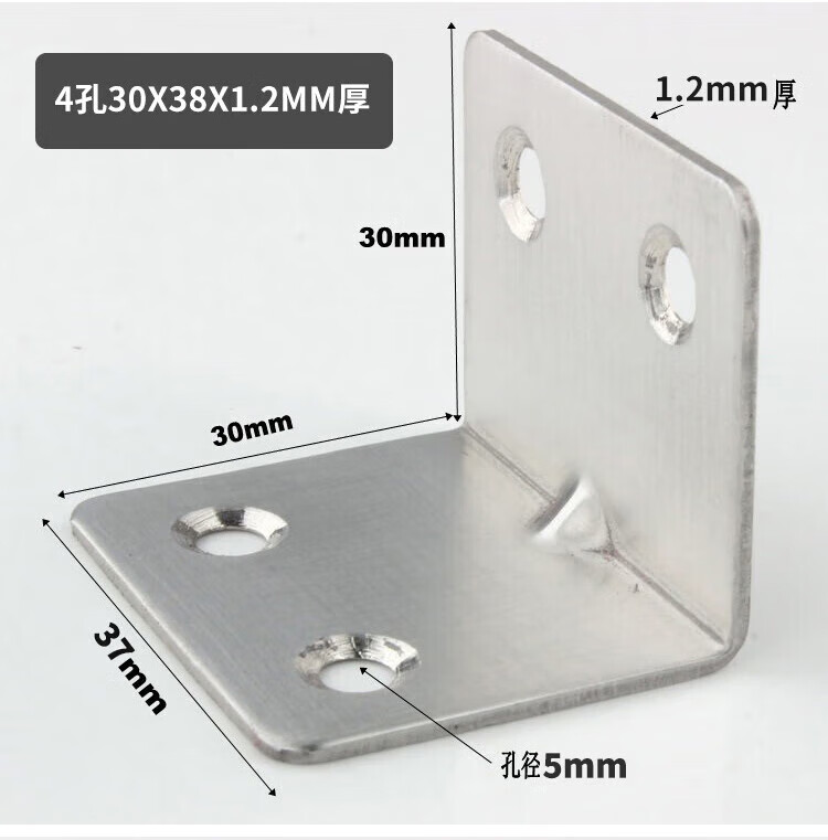 海斯迪克 不锈钢角码 HK-58 30*38*1.2mm 4孔 1个