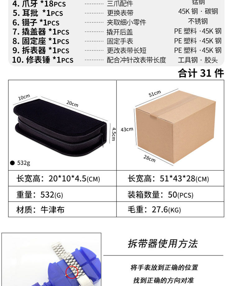 冰禹 修表31件套 BYJZ-1118 拆表器工具套装 31个 1套