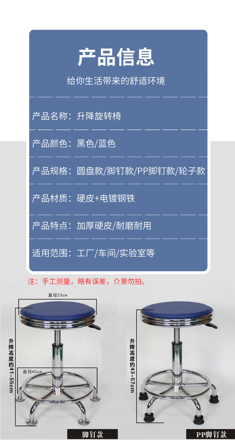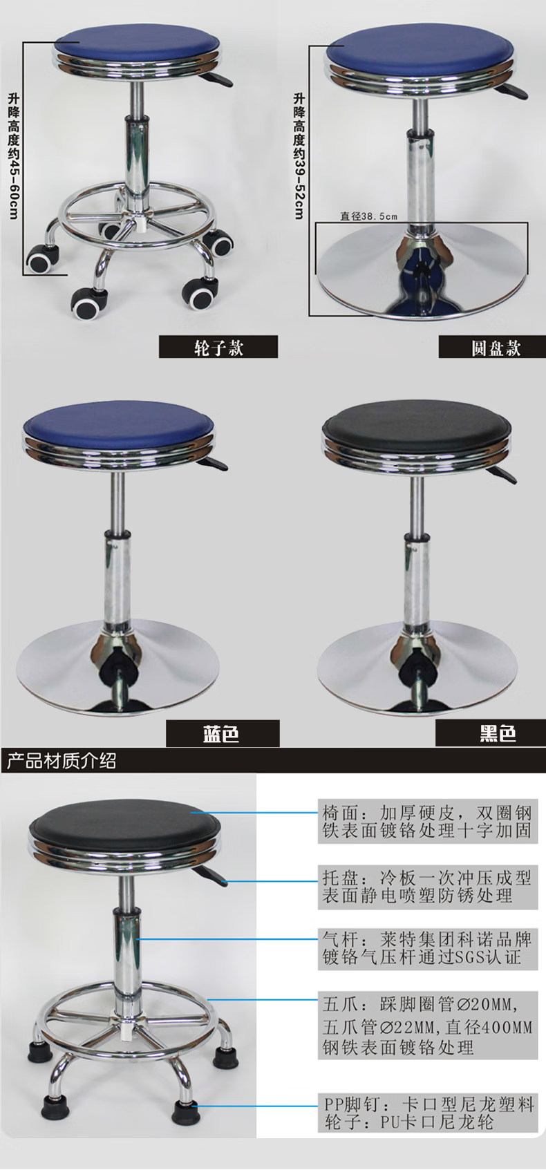 海斯迪克 车间工作椅子 HKQS-125 黑色-脚钉款 1把