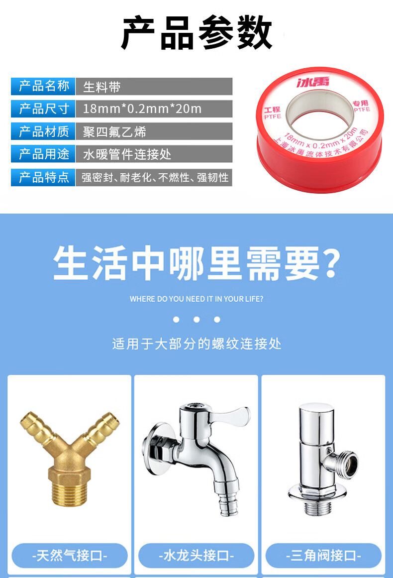 冰禹 生料带 BYrl-14 18mmx20m 10卷 1包