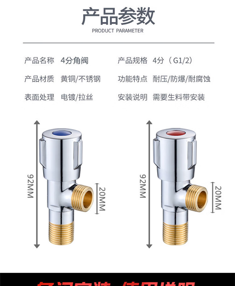 冰禹 三角阀 BYJZ-3620 精铜1冷+1热 4分口 1个