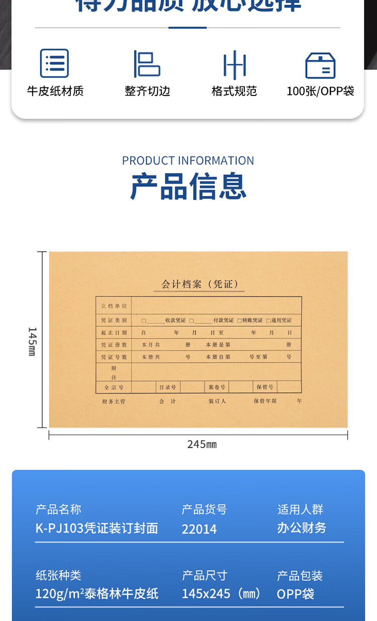 得力 凭证装订封面 22014 145*245mm 50个 1袋