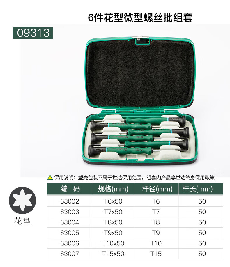 世达 一字微型螺丝刀组套 09311 6件 1套