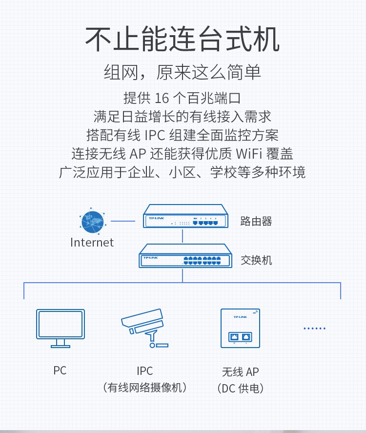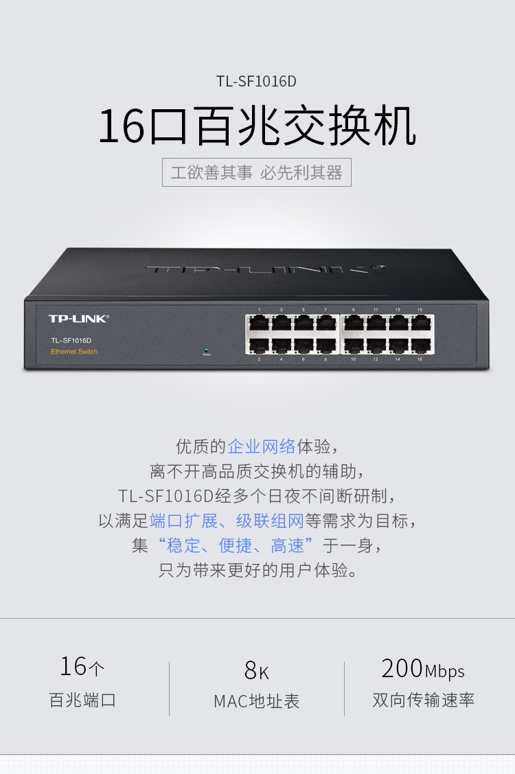 普联 以太网交换机 TL-SF1016S 16口 1台