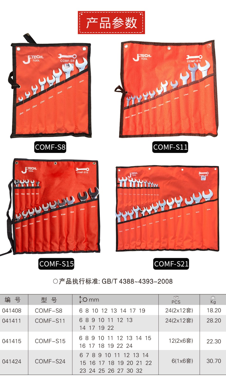 捷科 镜抛扳手套装 COMF-S15 6-24mm 15件 1套