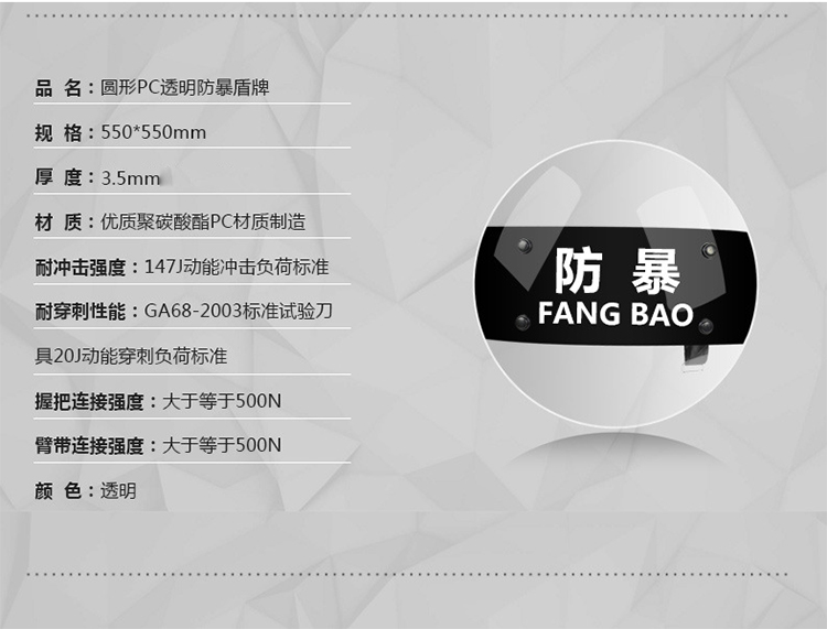 赫思迪格 防暴盾牌 JG-1301 圆形盾牌 1个