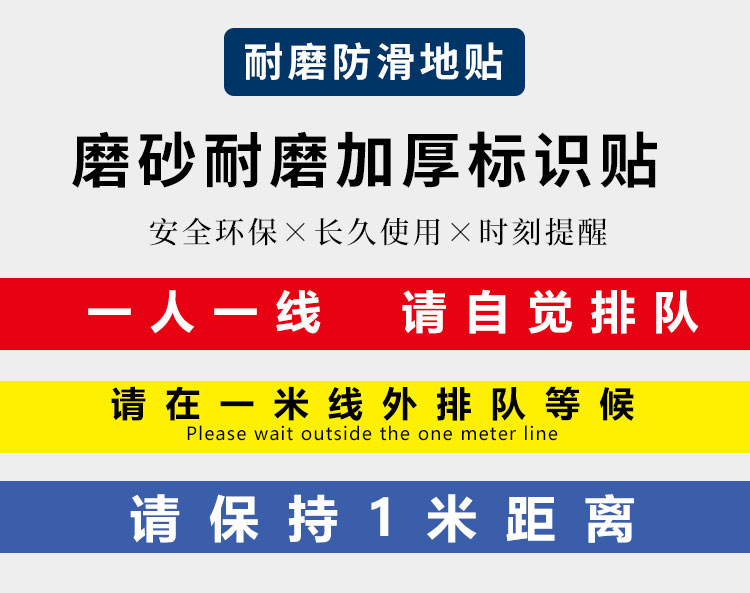 赫思迪格 耐磨防滑地贴 HGJ-63 不干胶10*120cm 一人一线 请自觉排队(红色) 1个