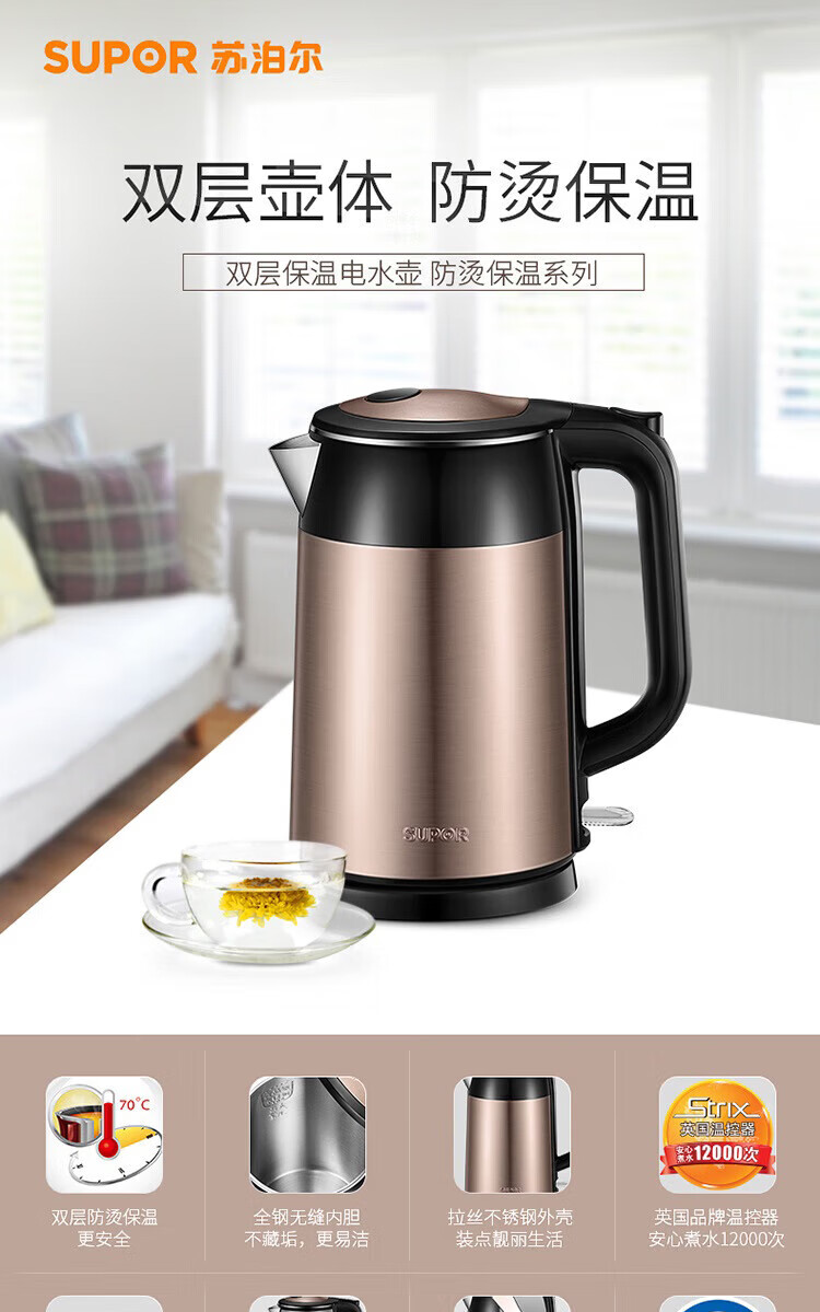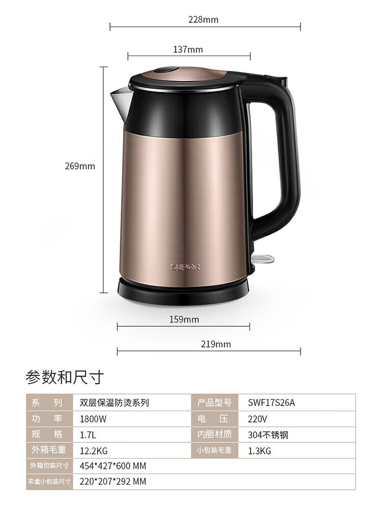 苏泊尔 电热水壶 SWF17S26A 1.7L 1台