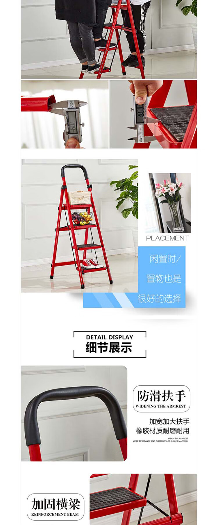 冰禹 折叠梯 Bj110 红色三步梯110cm 1个