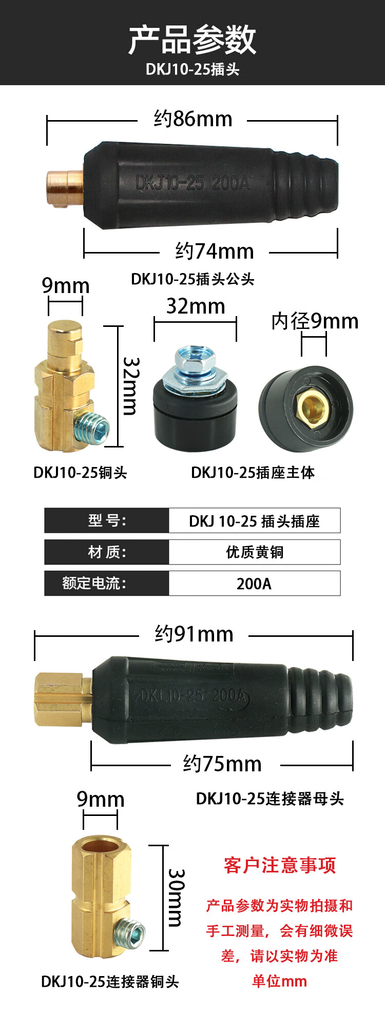 • 规格公头+母头【黑】