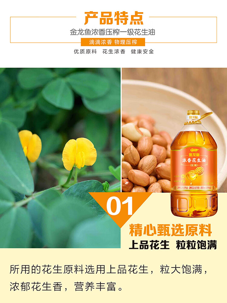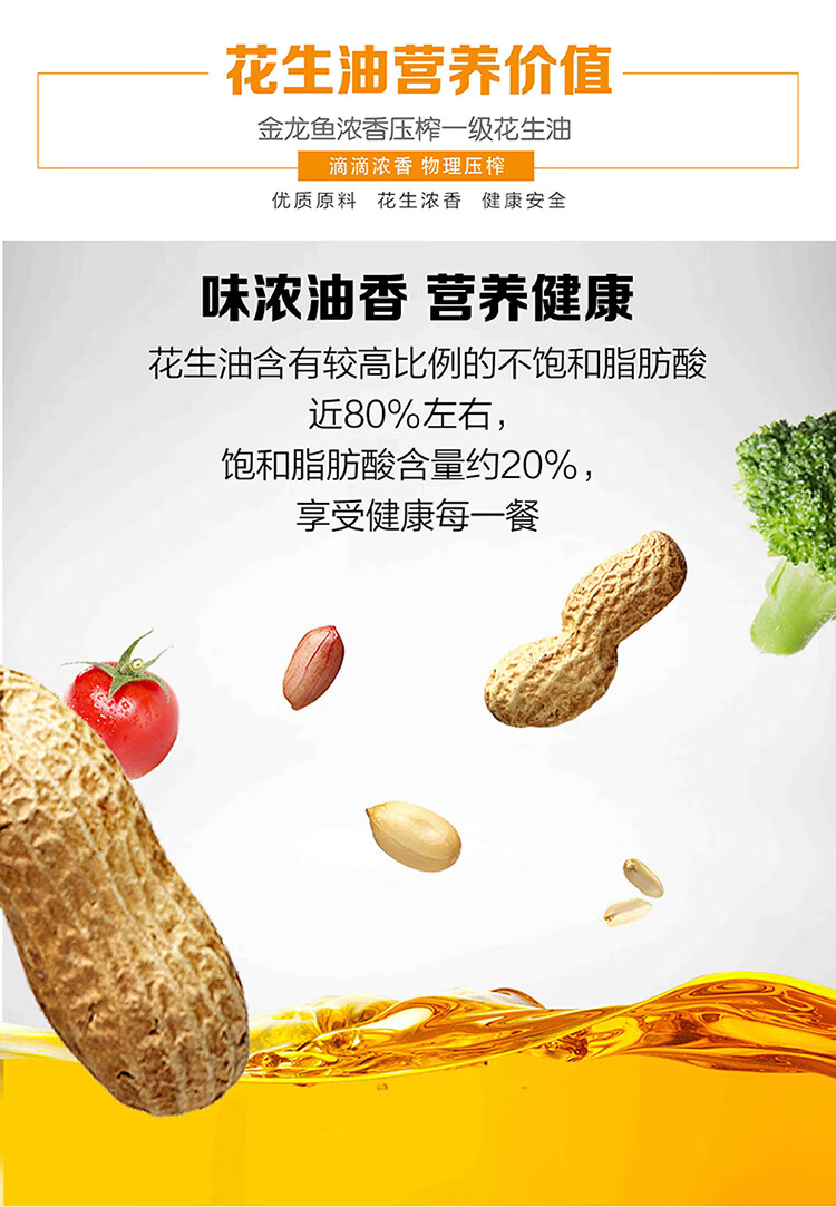 金龙鱼 物理压榨醇厚浓香花生油 5L 1桶