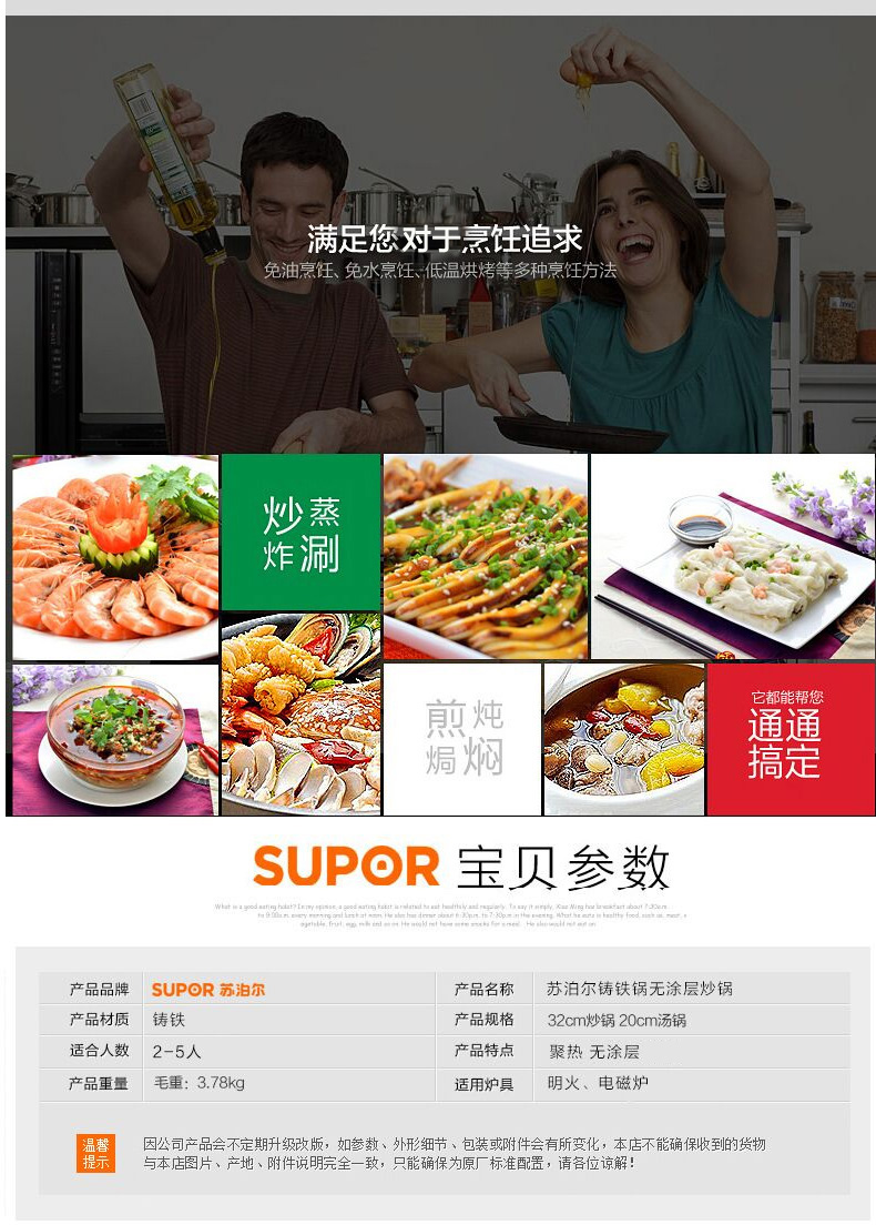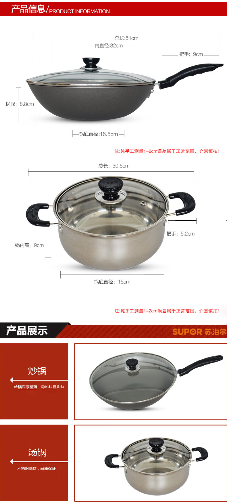 苏泊尔 锅具二件套 T0929K 炒锅32cm+汤锅20cm 1套