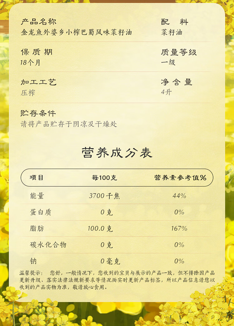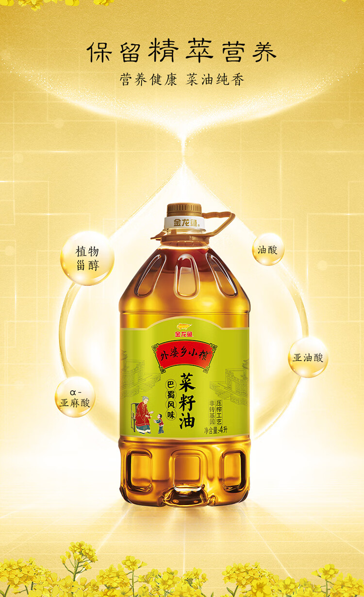 金龙鱼 非转基因巴蜀风味菜籽油 4L 1桶