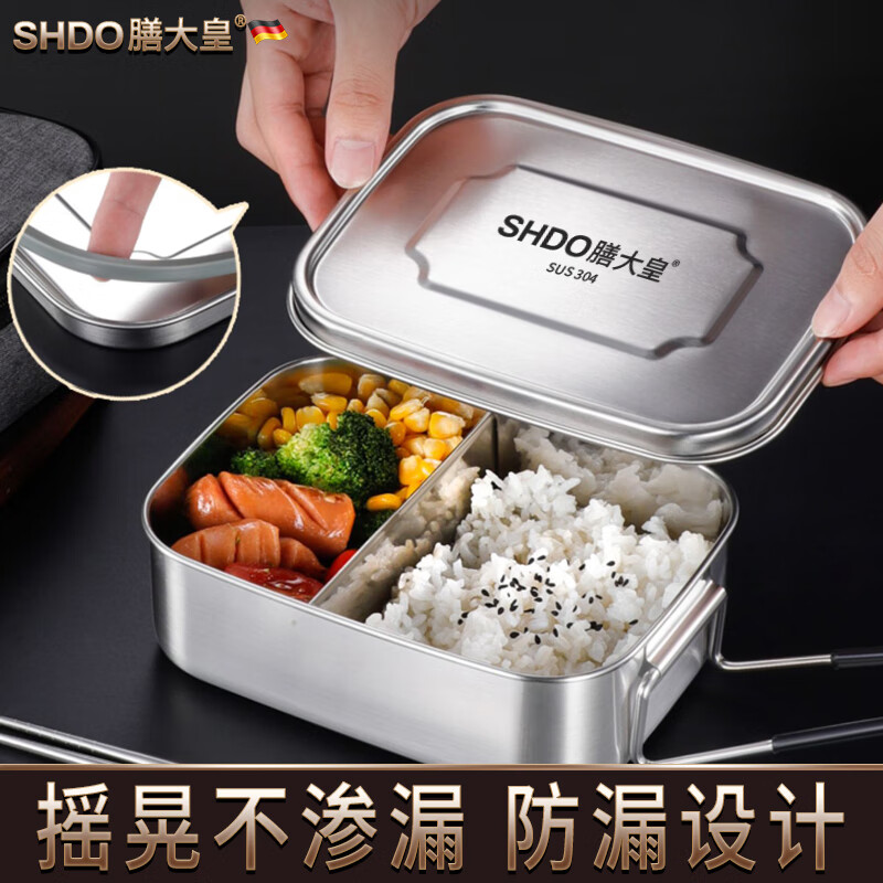 膳大皇 304不锈钢饭盒 SD-01 1200mL 无格 密封防漏 1个