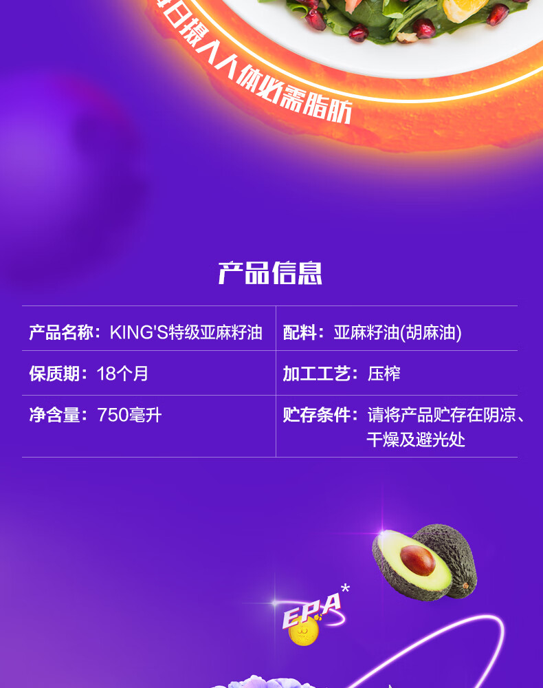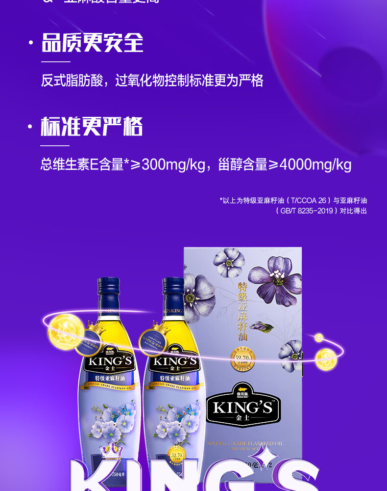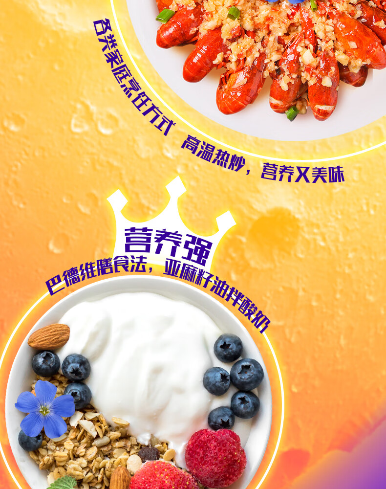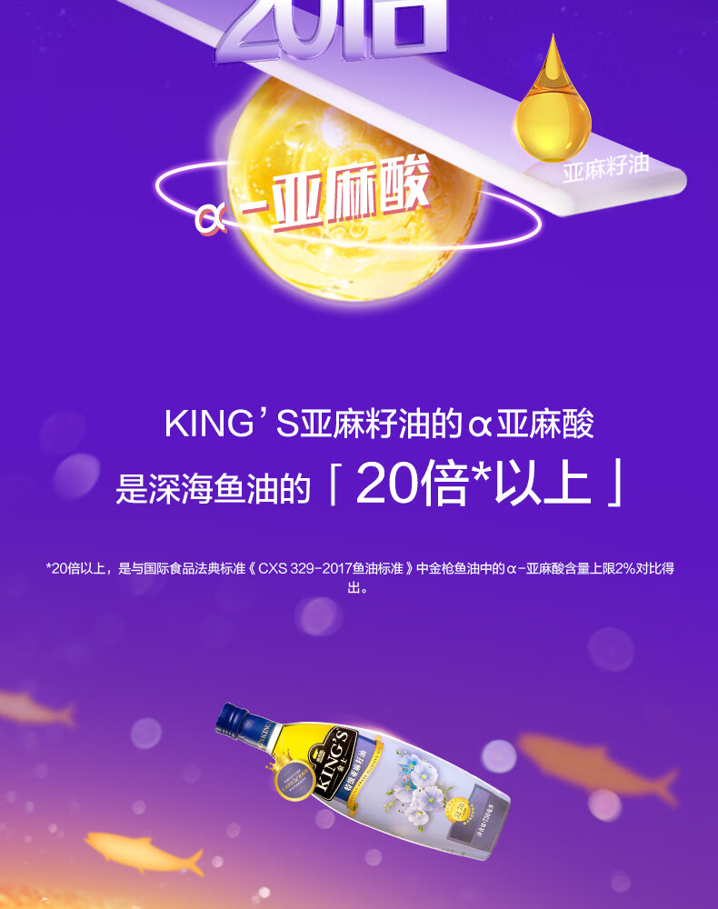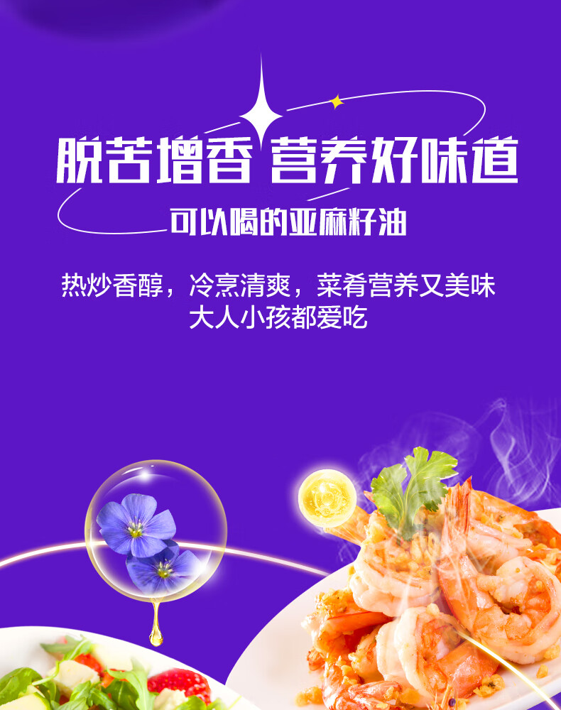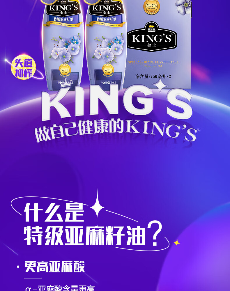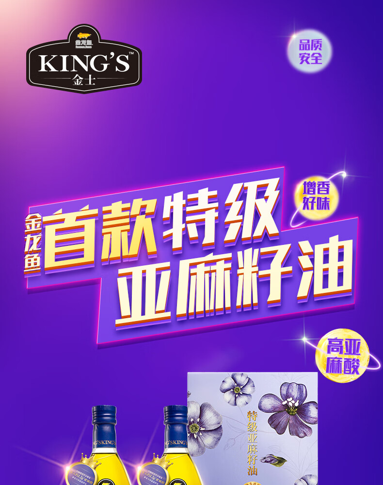 金龙鱼 进口原料特级初榨亚麻籽油 750mL 2瓶 1盒