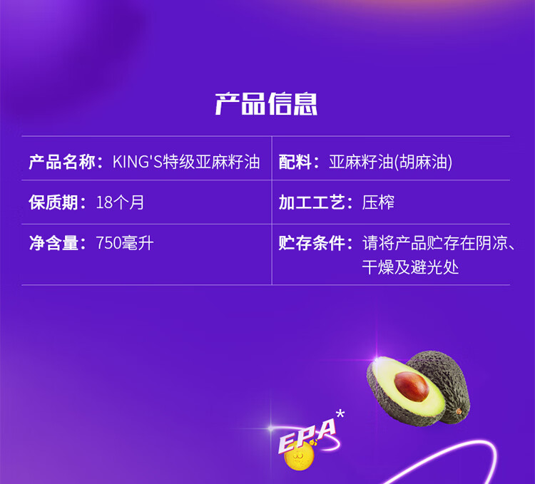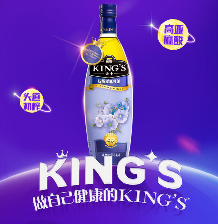金龙鱼 进口原料特级初榨亚麻籽油 750mL 1瓶