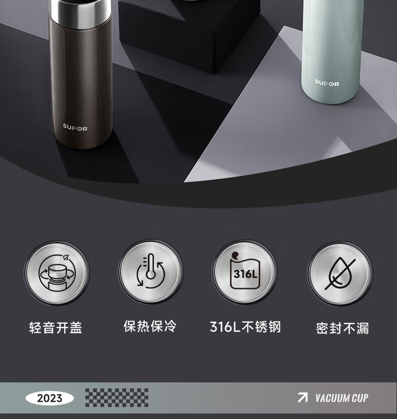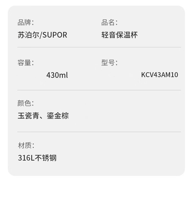 苏泊尔 316L不锈钢保温杯 KCV43AN10 鎏金棕 430mL 1个