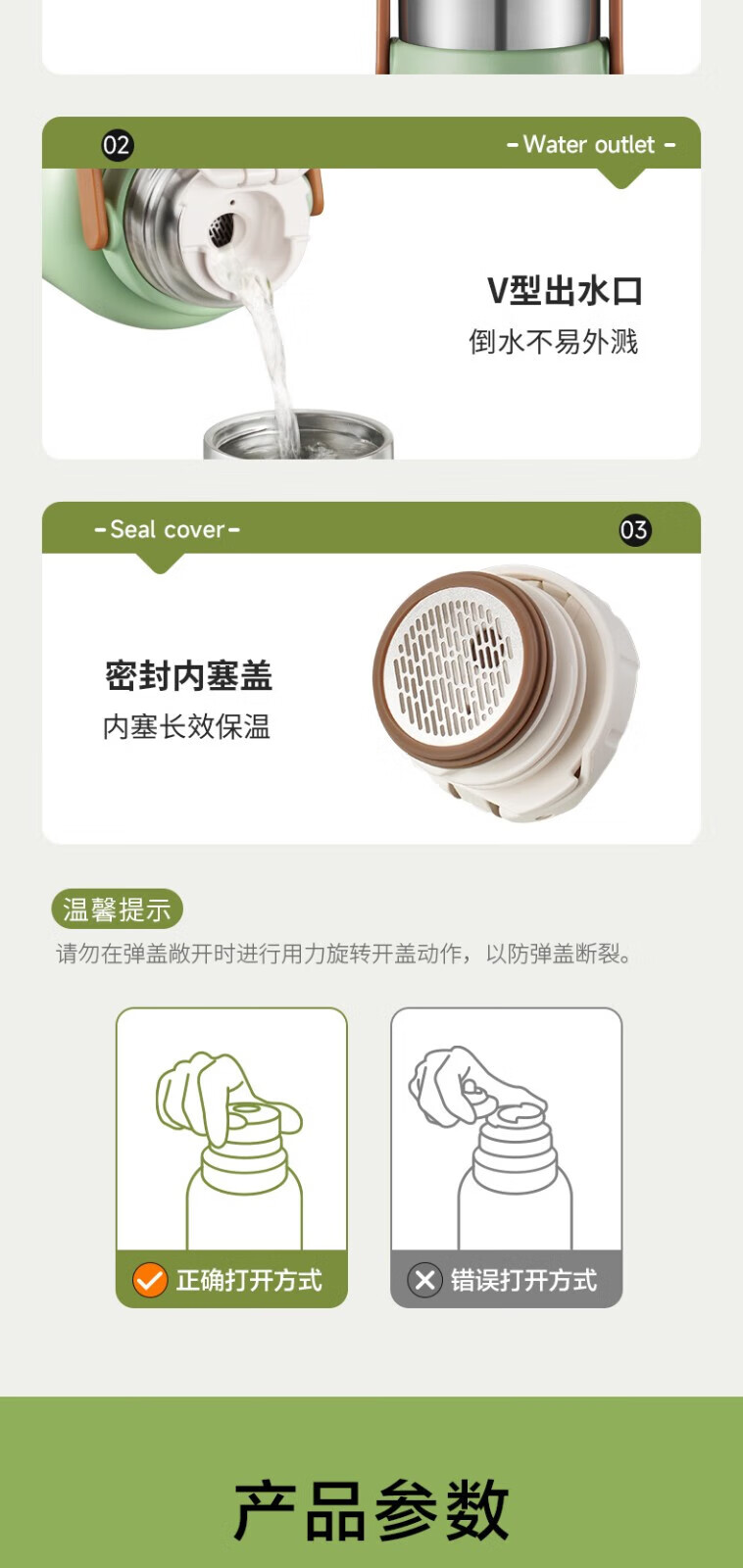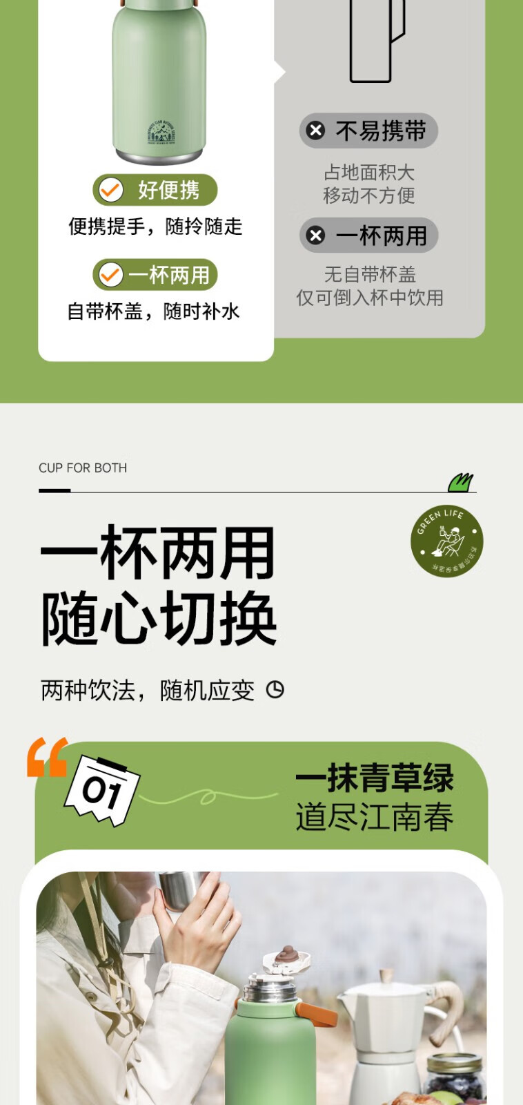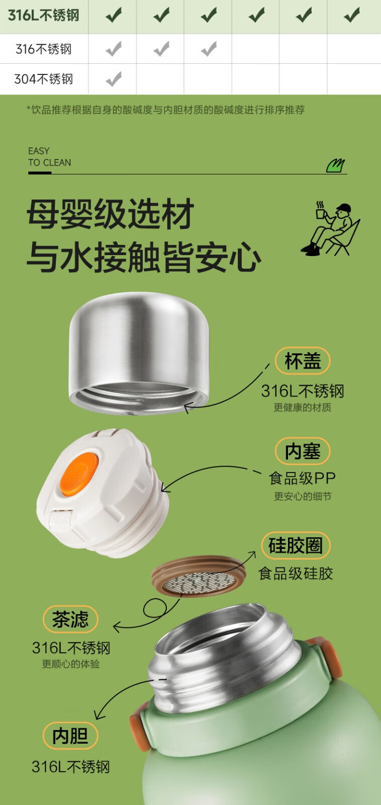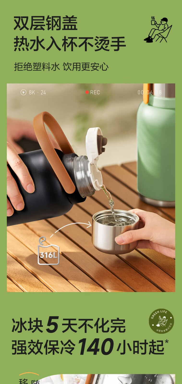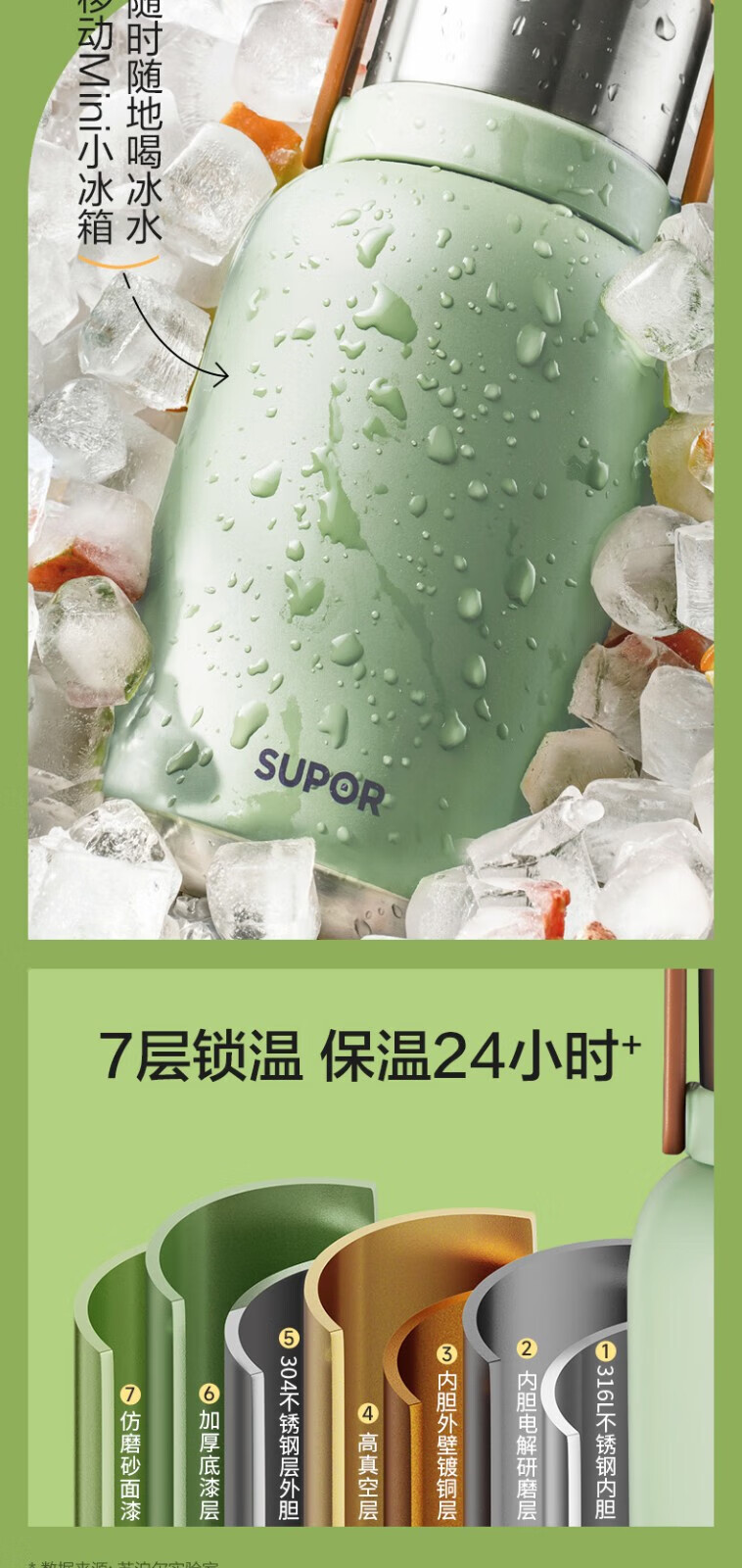 苏泊尔 316L不锈钢保温杯 KCV13AC10 岩木黑 1.3L 1个