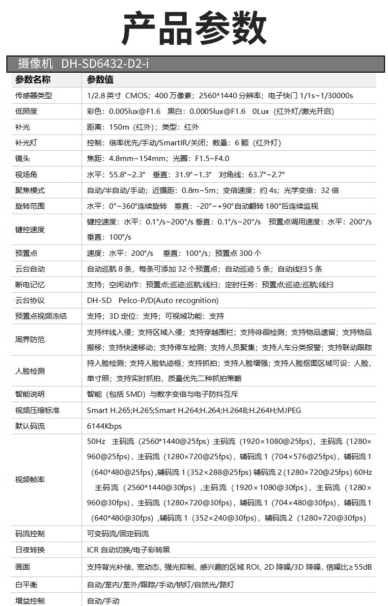 大华 摄像头 SD6432-D2-i 400万32倍红外球机 1个