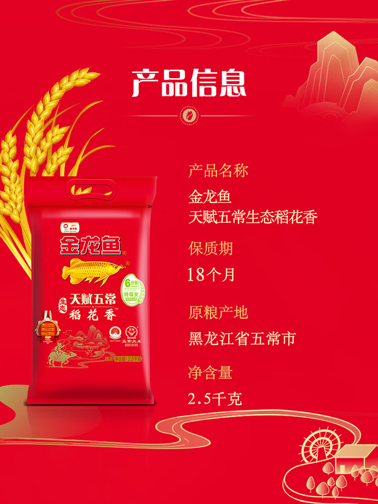 金龙鱼 东北五常稻花香大米 2.5kg 1袋