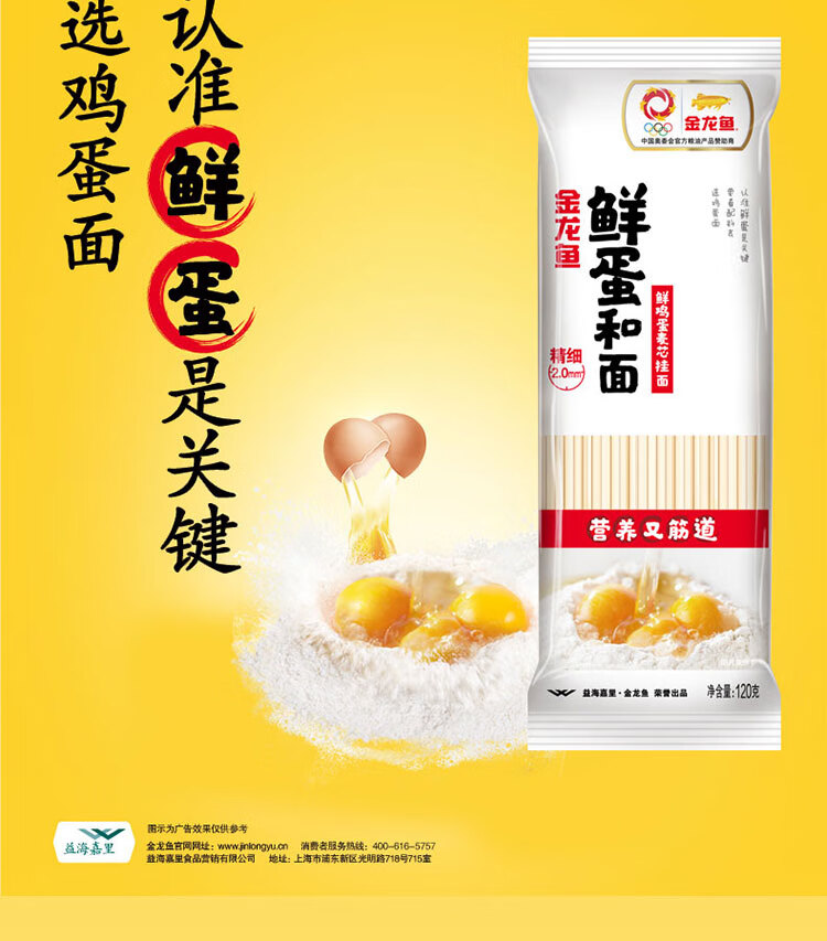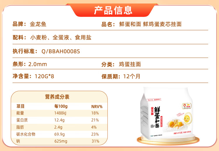 金龙鱼 鲜鸡蛋麦芯挂面 120g 1袋