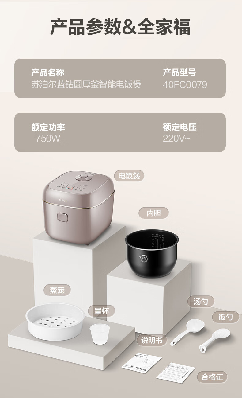 苏泊尔 多功能电饭煲 SF40FC0079 4L 1台