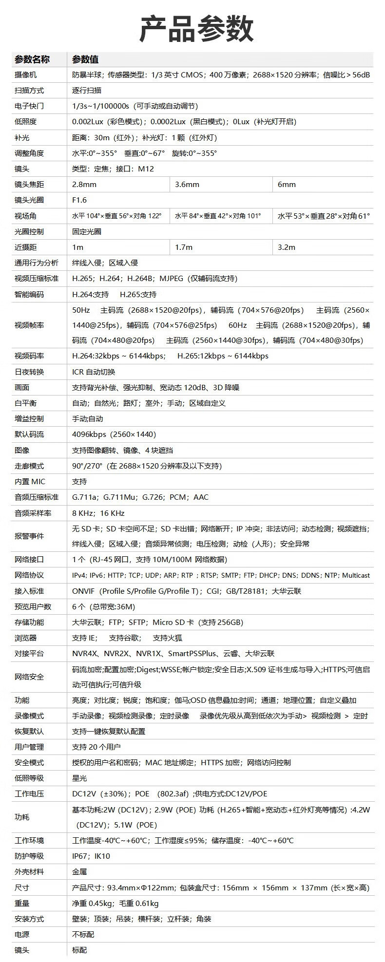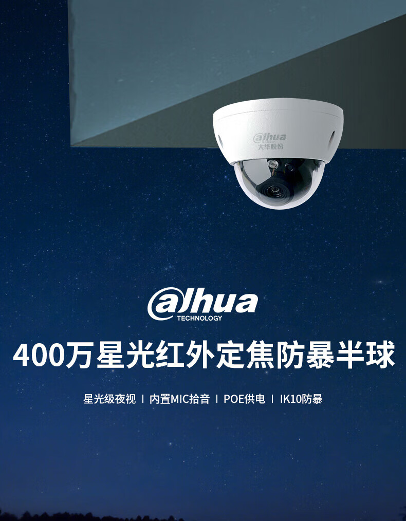 大华 400万红外防爆半球型摄像机 DH-IPC-HDBW2433R-SA 定焦3.6mm 1个