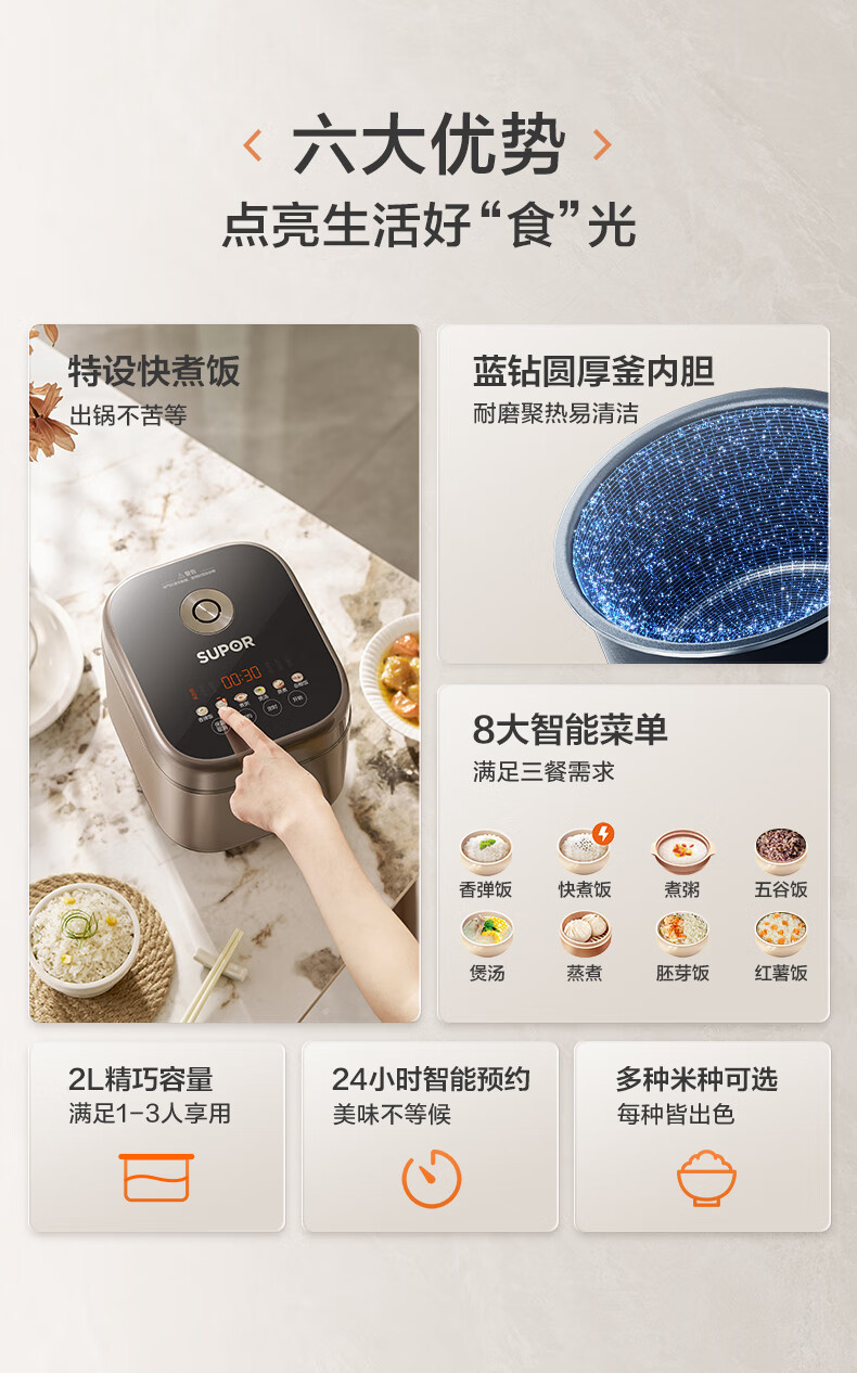 • 【蓝钻内胆】多种智能菜单 2L