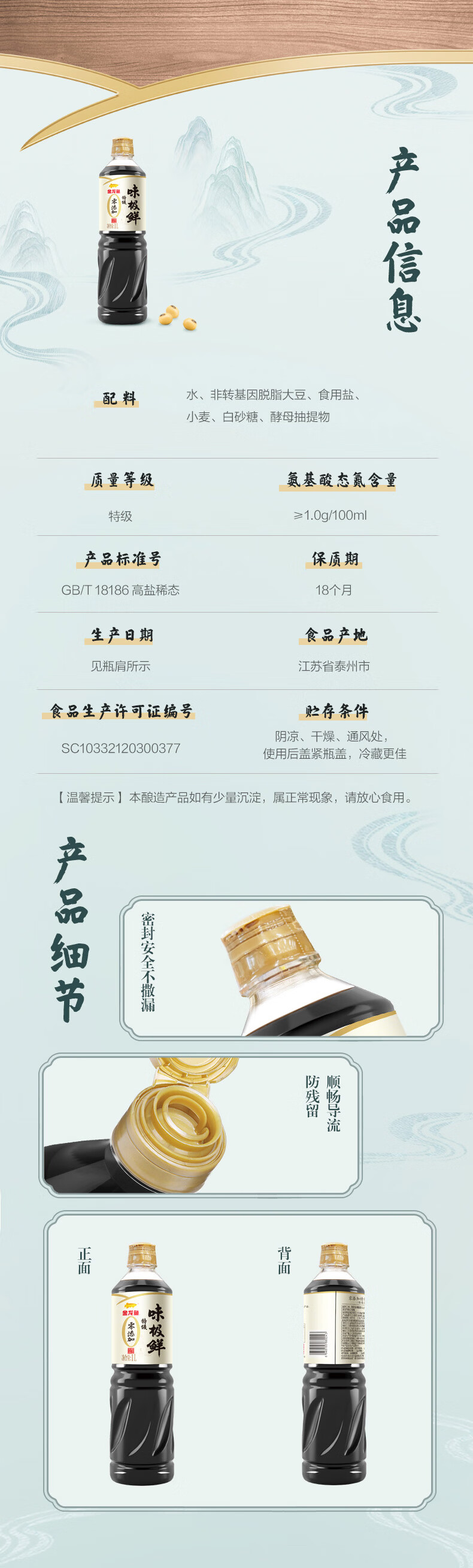 金龙鱼 零添加特级味极鲜 1L 1瓶