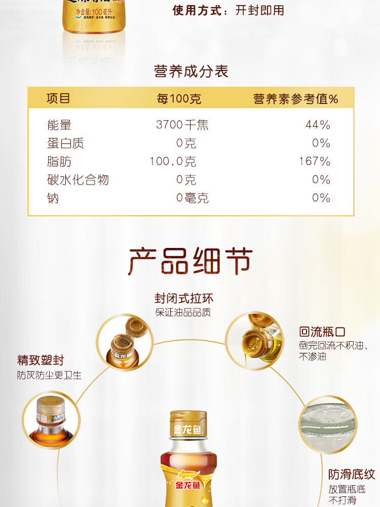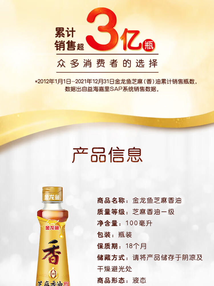 金龙鱼 凉拌调味纯芝麻香油 100mL 1瓶