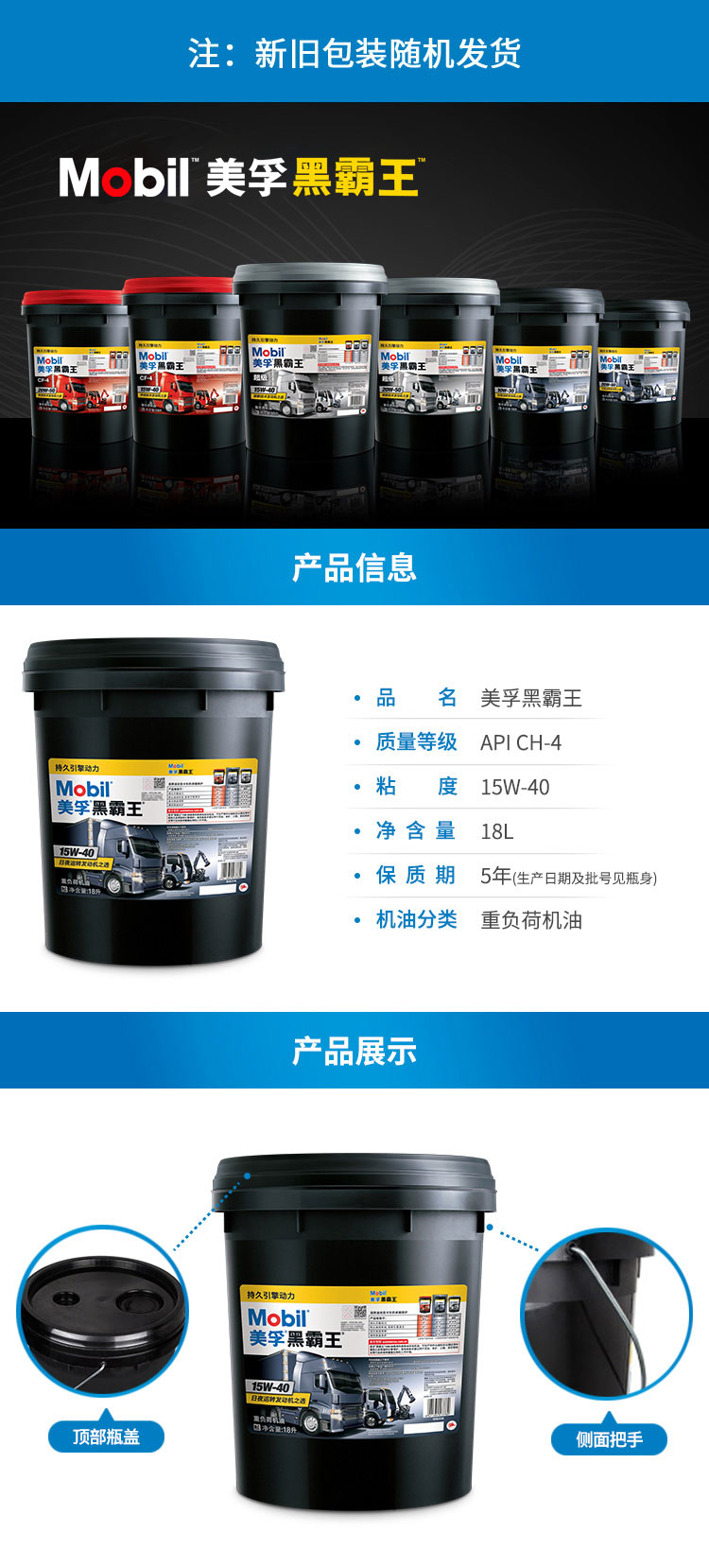 美孚 柴机油 CH-4级 黑霸王 15W-40 18L 1桶