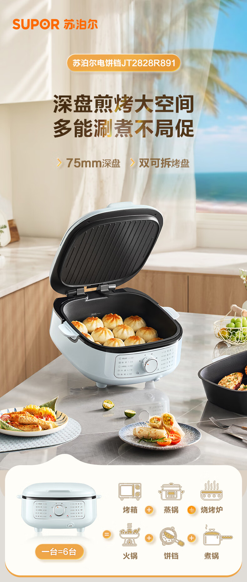 苏泊尔 家用电饼档(下架) JT2828R891 30cm 2200W 1台