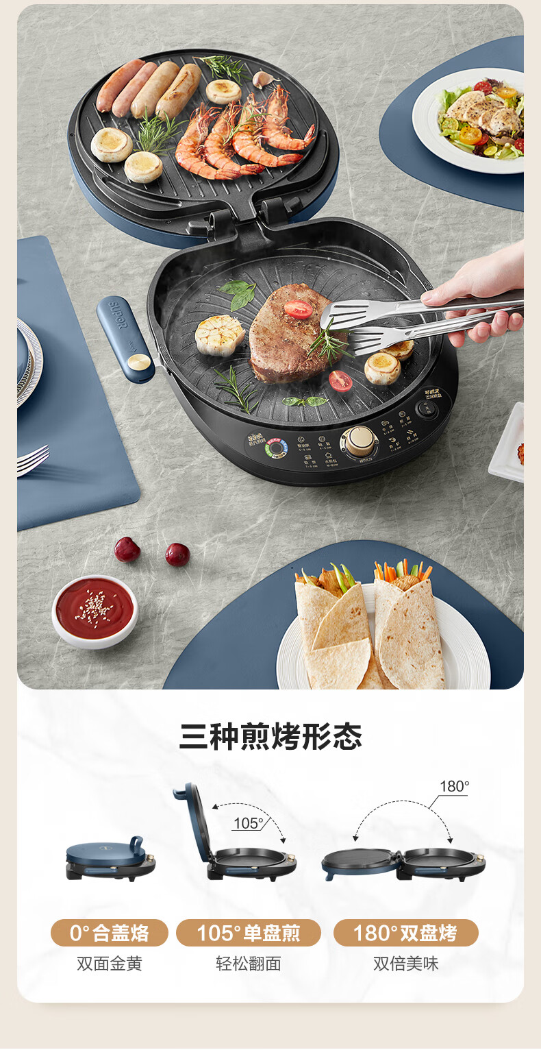 苏泊尔 双面加热电饼档 JD34RQ877 孔雀蓝 34cm 1700W 1台