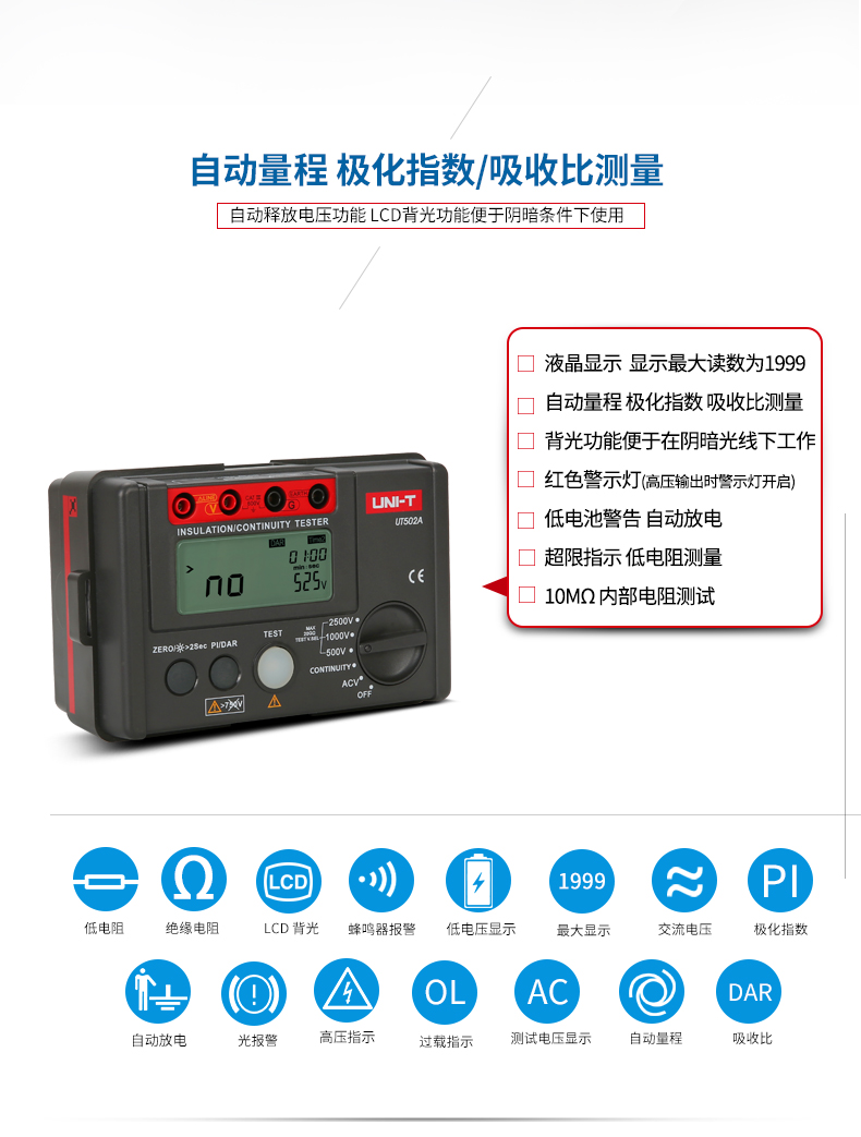 优利德 绝缘电阻测试仪 UT502A 1个