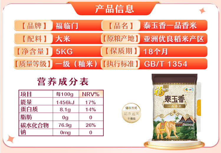 福临门 泰玉香一品香米 5kg 1袋