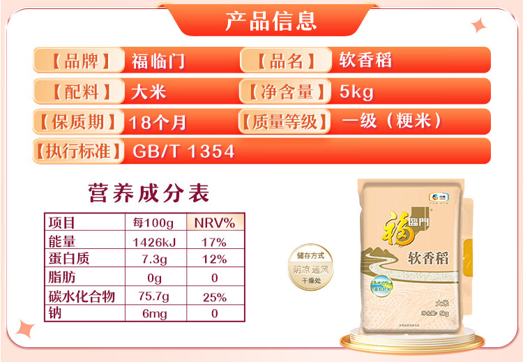 福临门 香稻大米 5kg 1袋