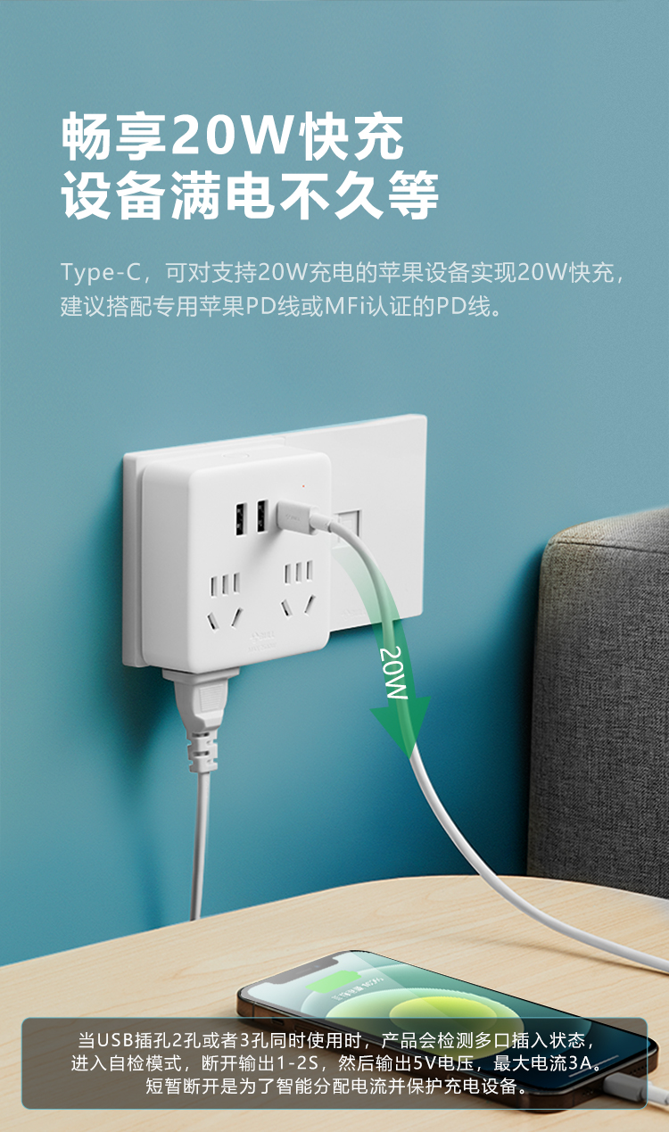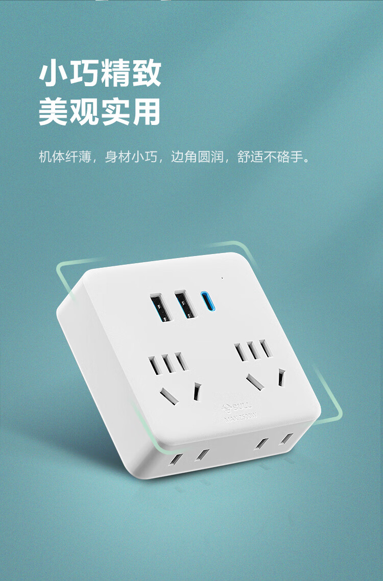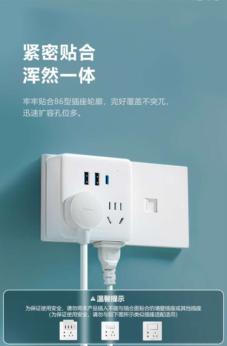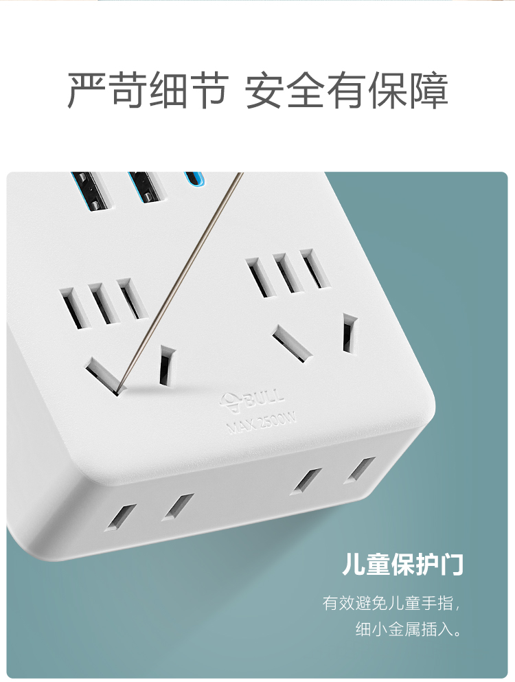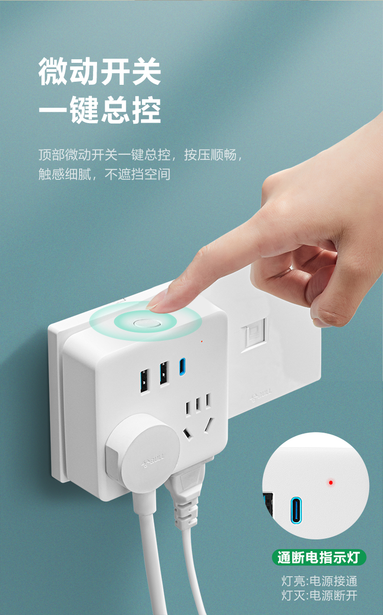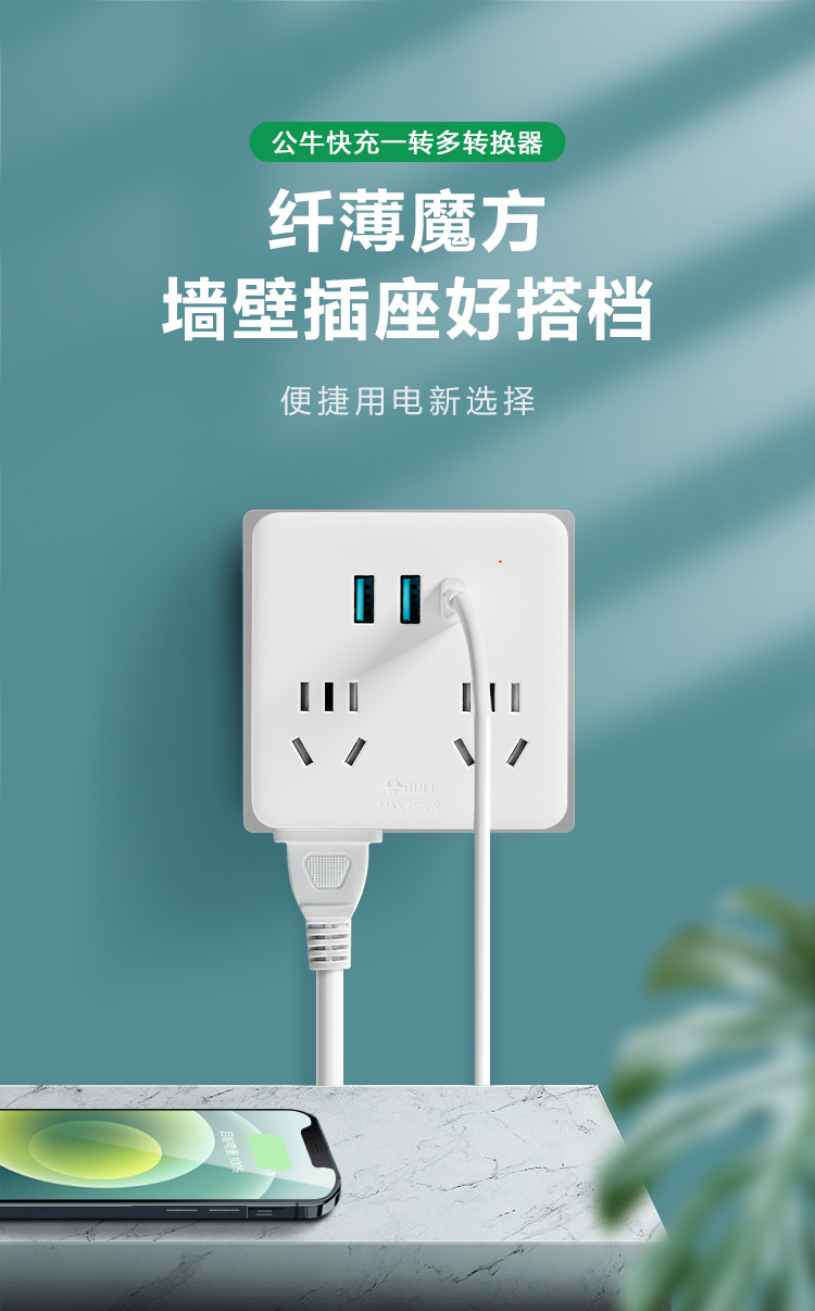 公牛 转换插头 GN-9322KQ 4位总控+USB 1个