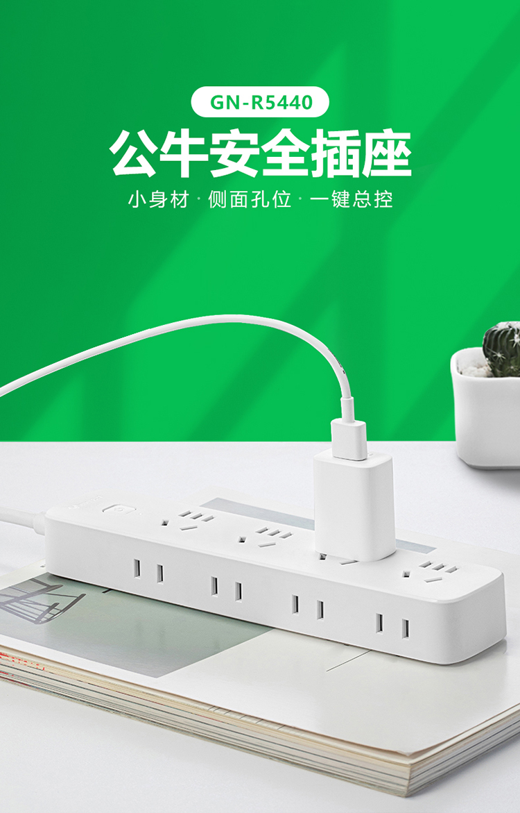 公牛 插线板 GN-R5440 8位总控1.8米 白色 1个