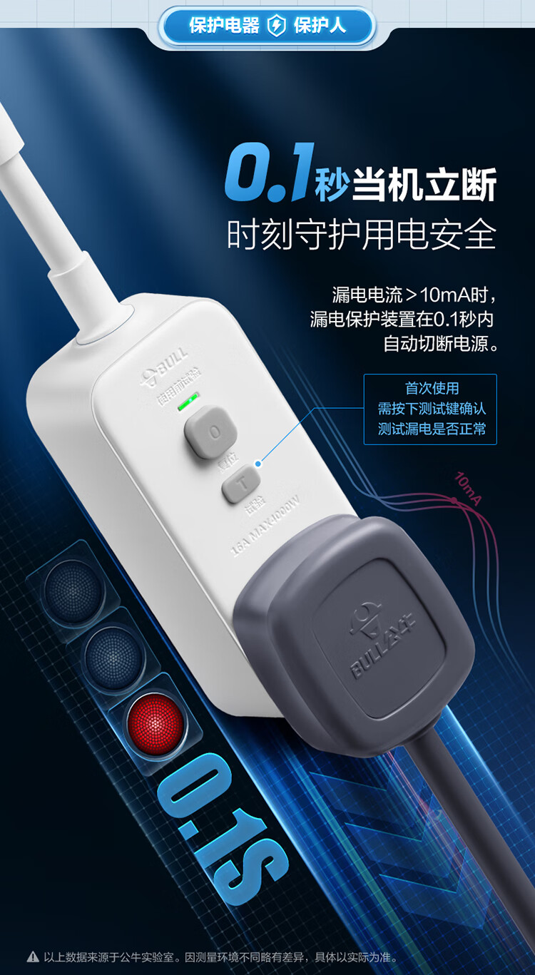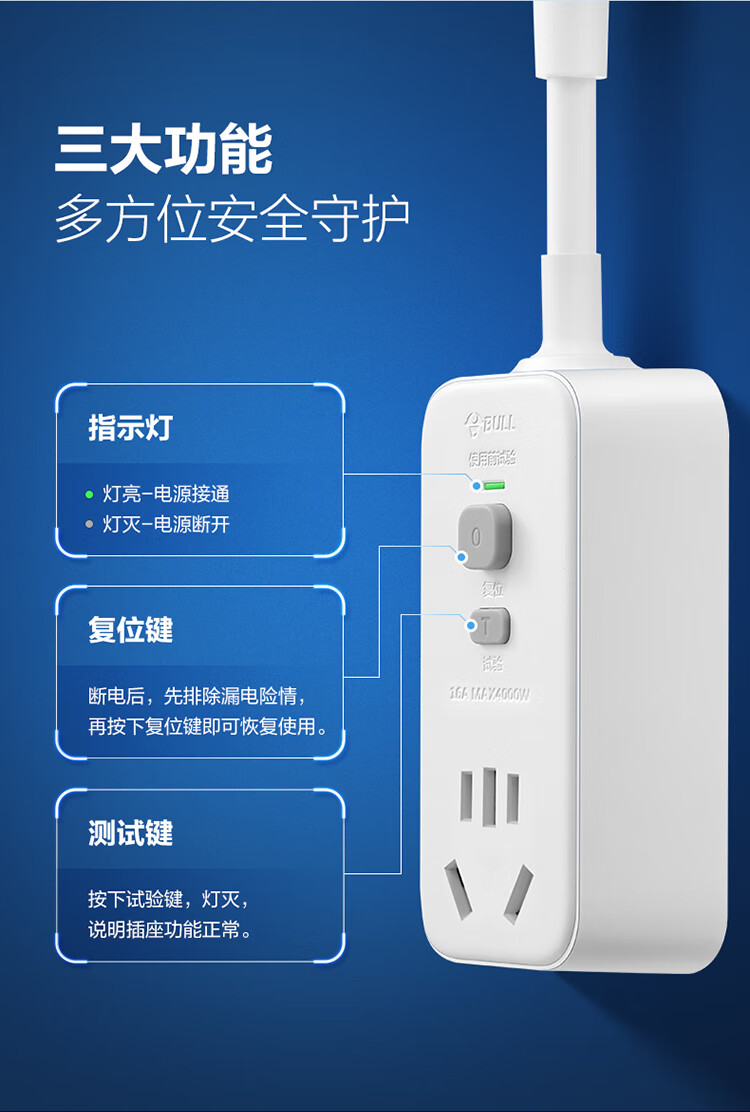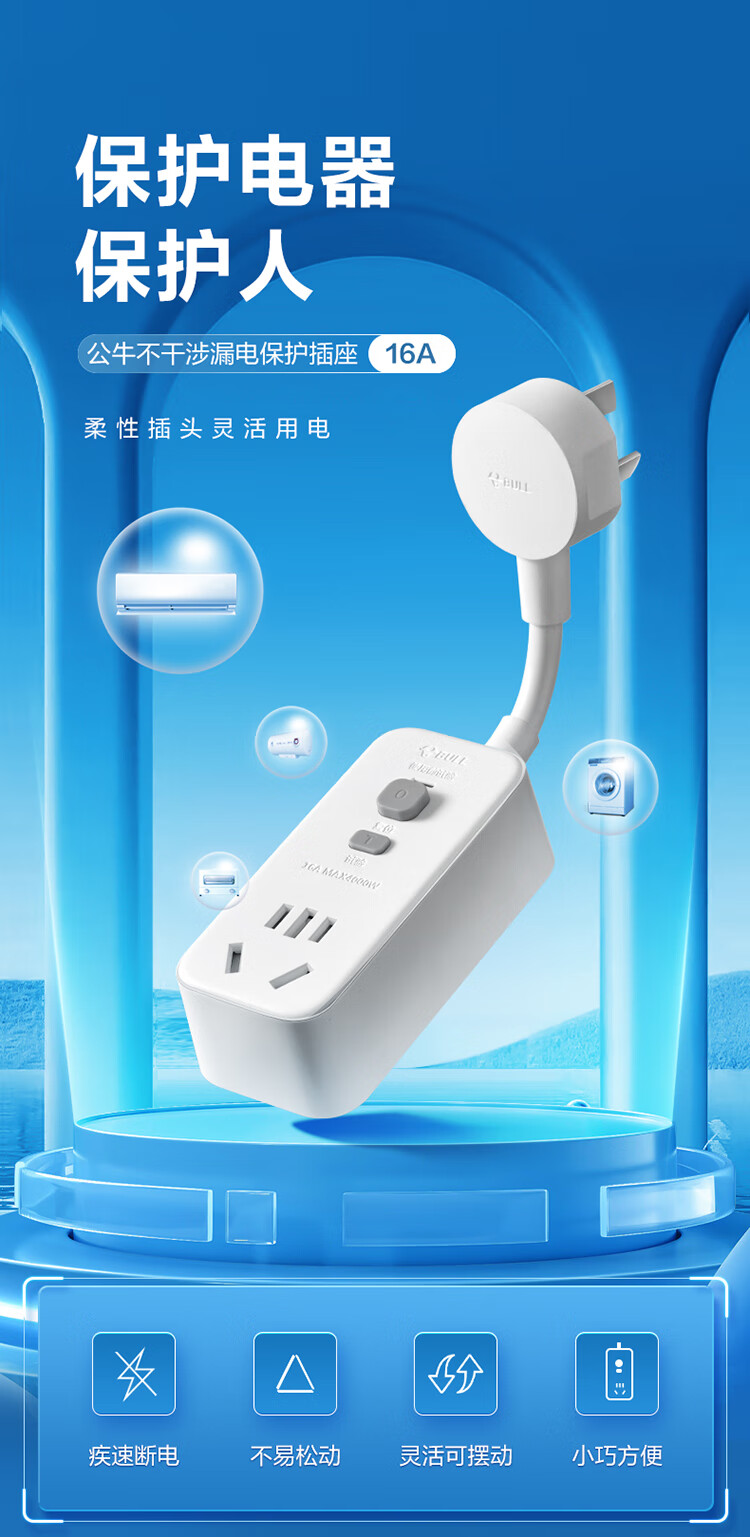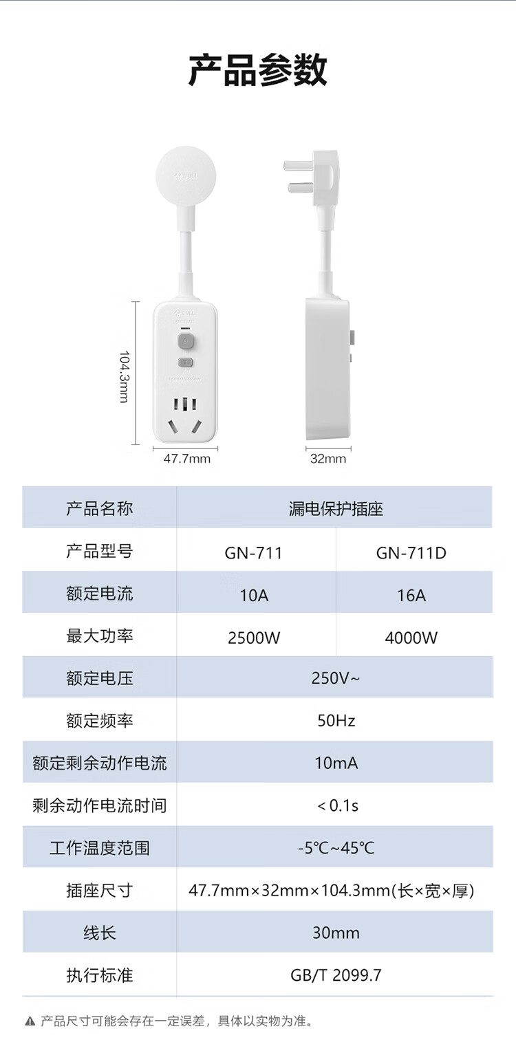 公牛 漏电保护器插头 GN-711D 16A 250V 1个