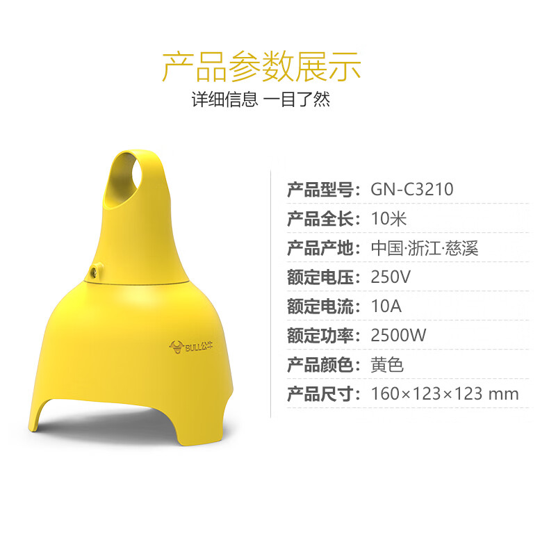 公牛 插线板 GN-C3210 3位全长10米 黄色 1个