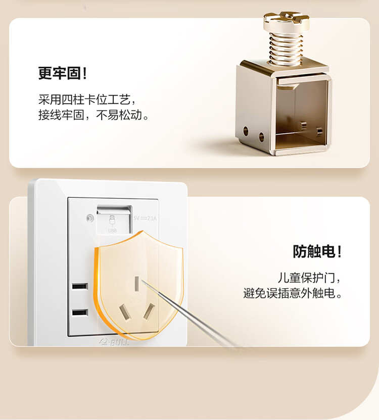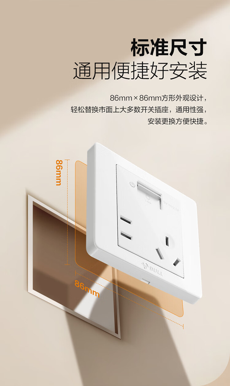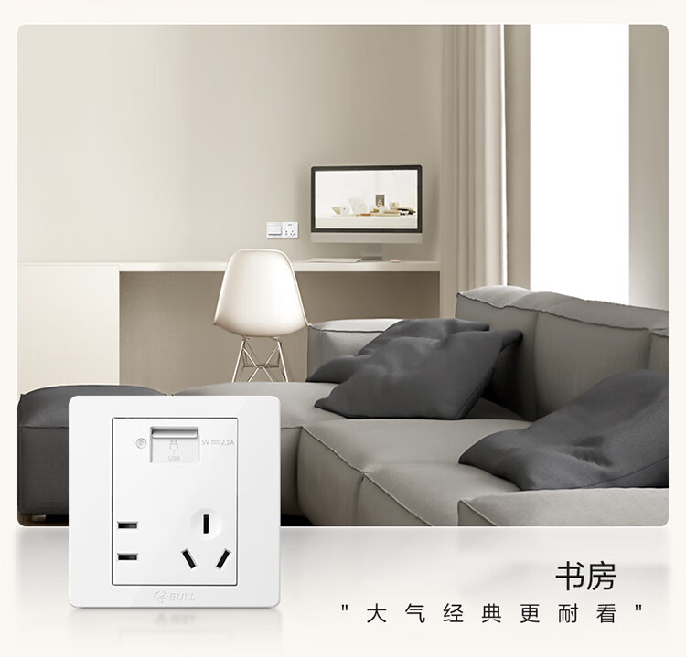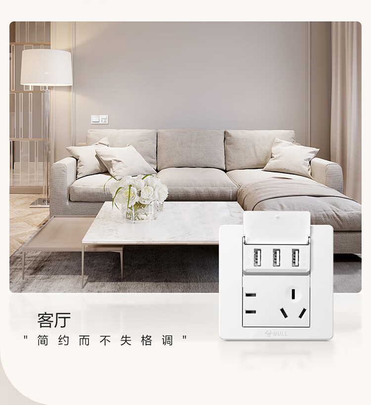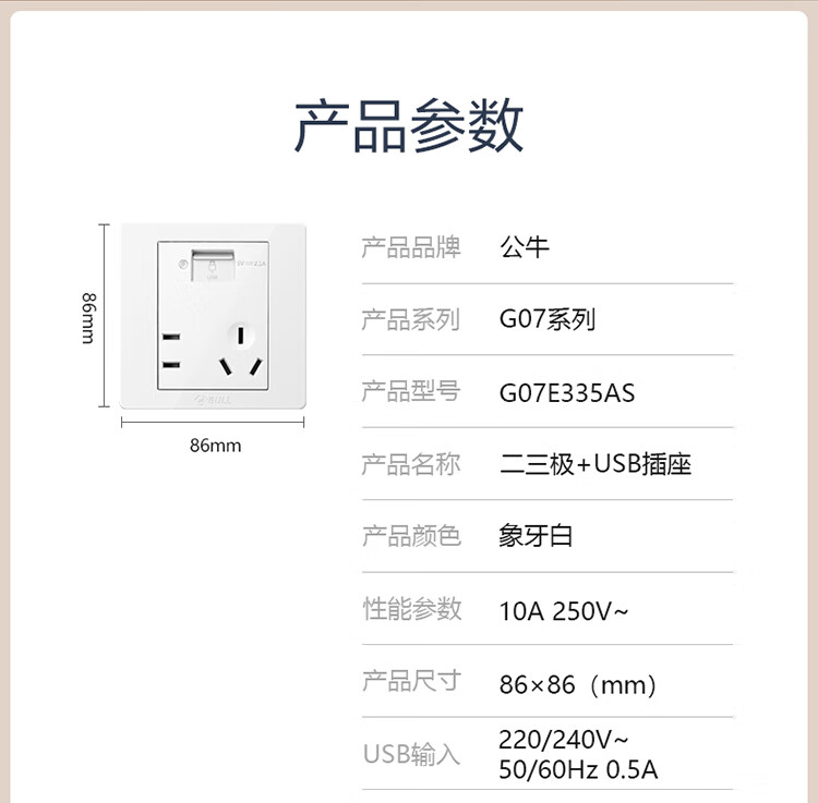 公牛 118型开关插座 G07E335AS 五孔 USB接口 白色 1个
