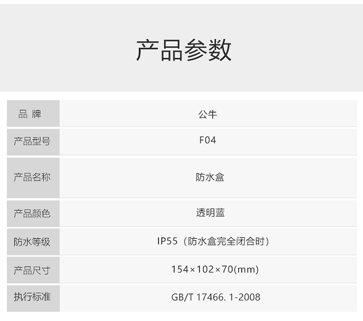 公牛 开关插座 F04S 透明防水盒 蓝色 1个