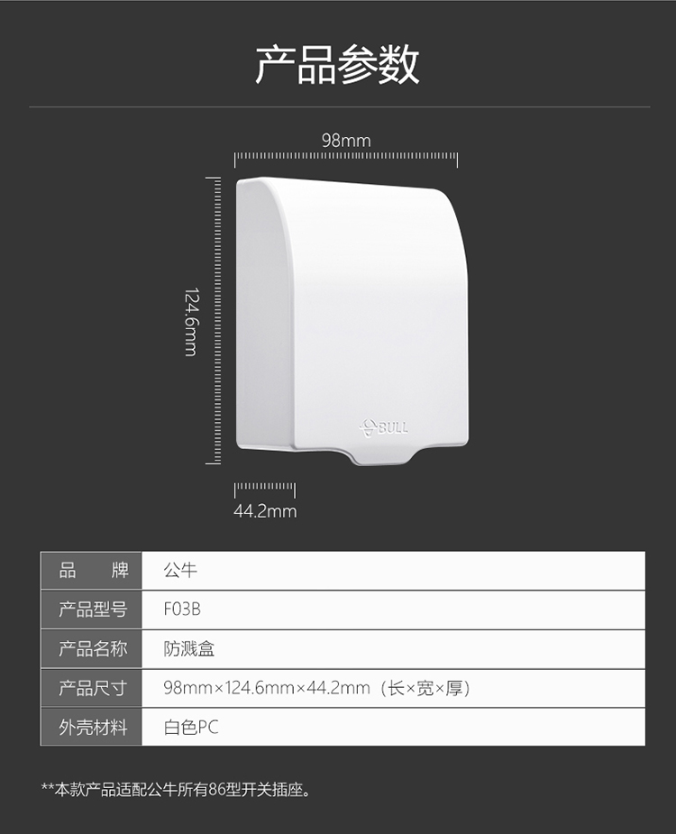 公牛 开关插座 F03B 防溅盒暗装使用 白色 1个