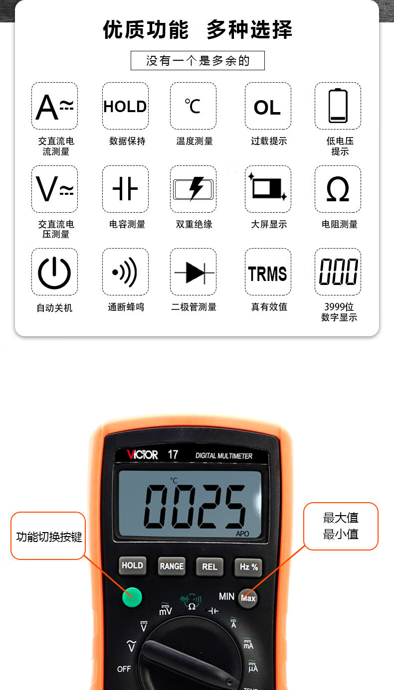 胜利仪器 高精度自动量程万能表 VC17 1个