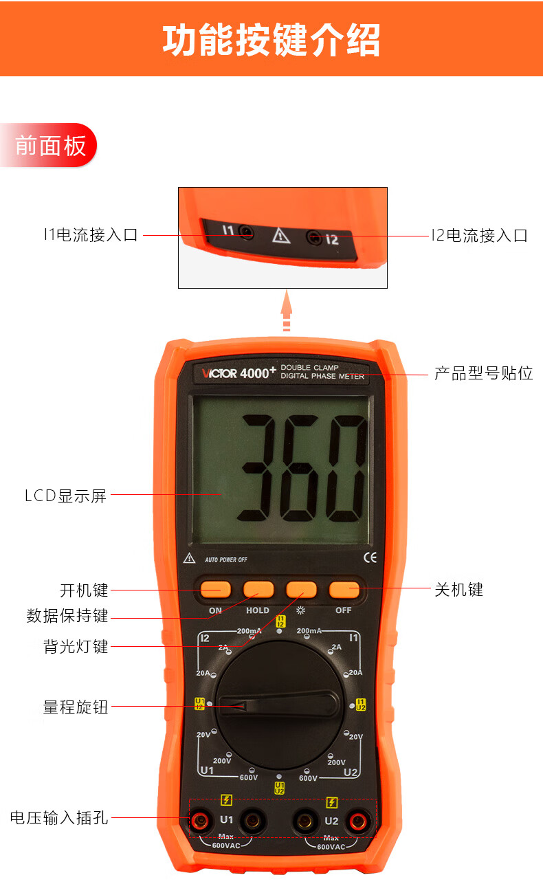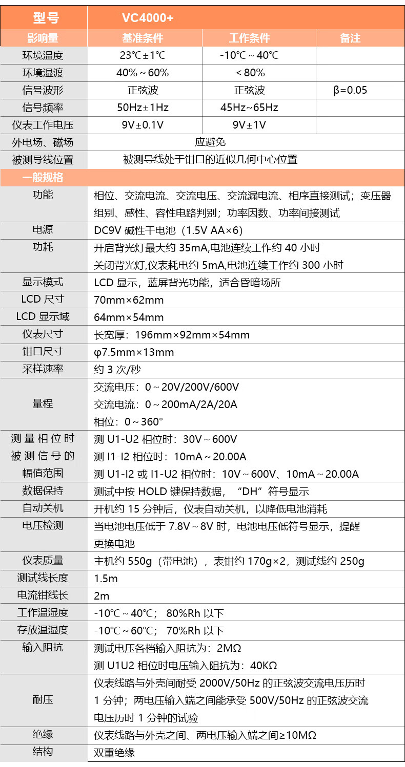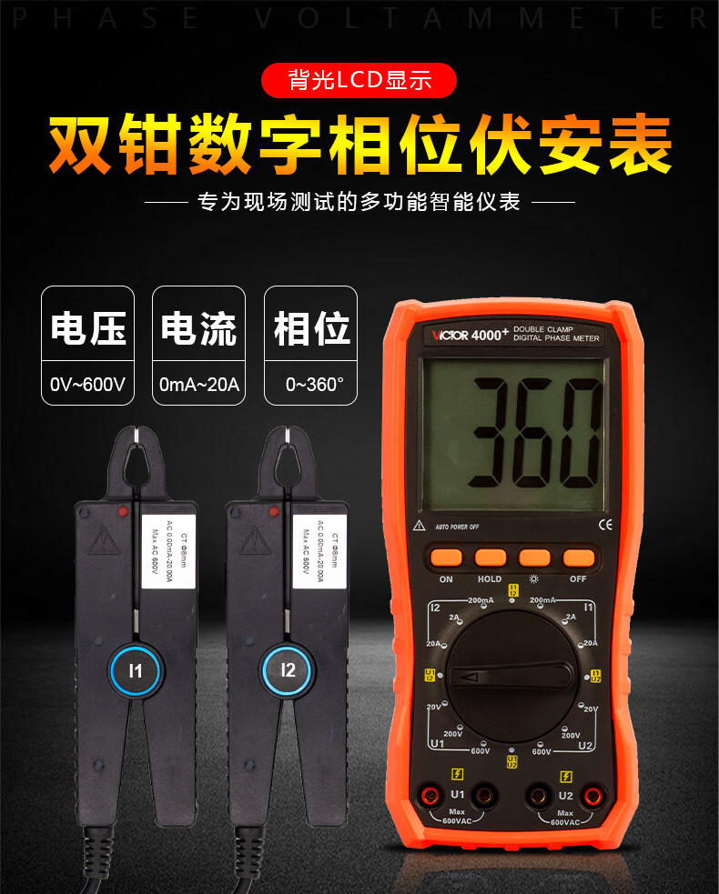 胜利仪器 数字相位伏安表 VC4000 双钳 1个