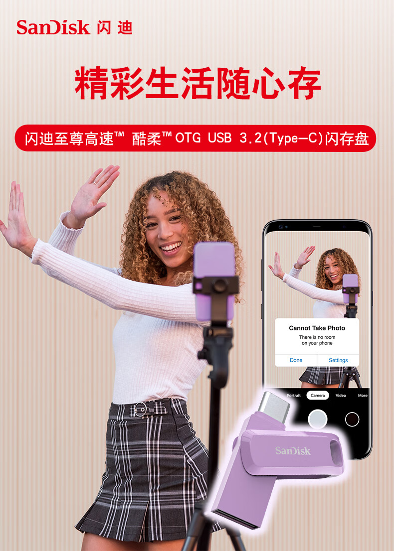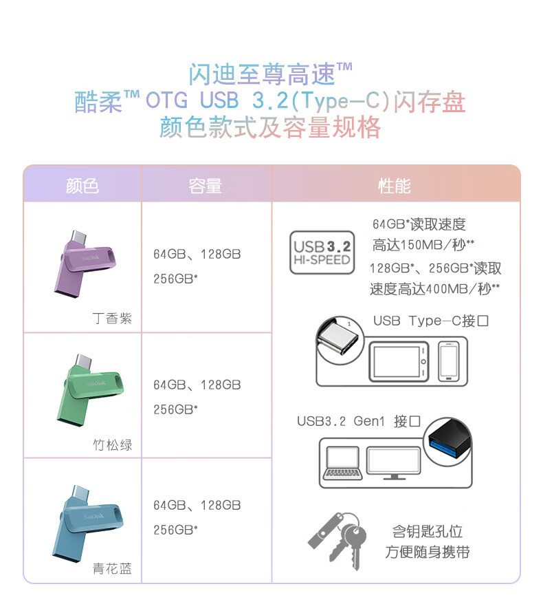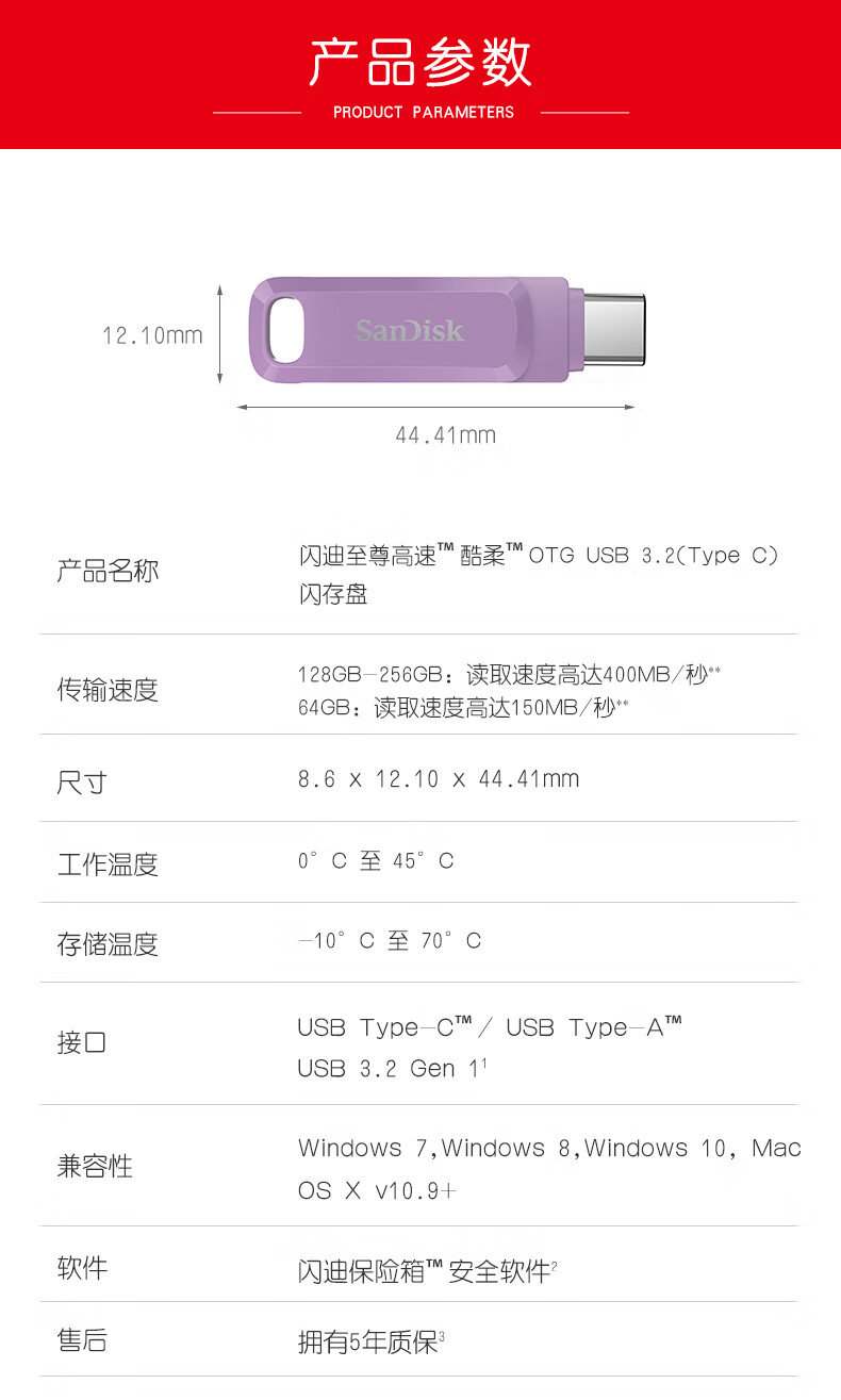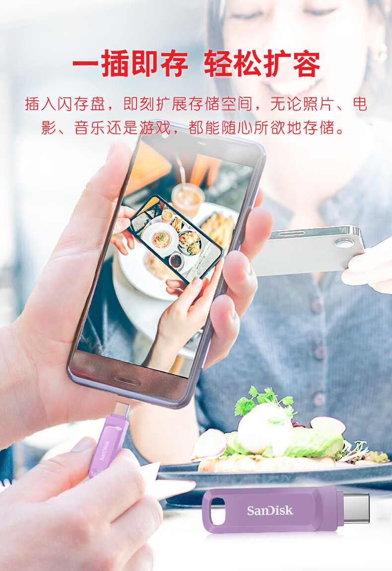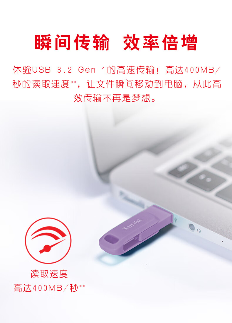 闪迪 U盘 DDC3 丁香紫 256GB 1个